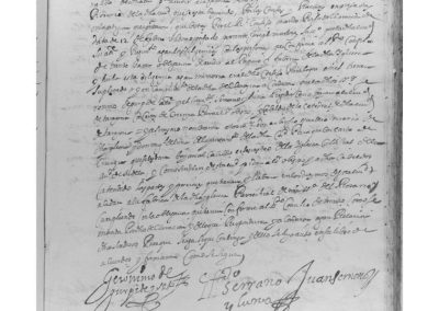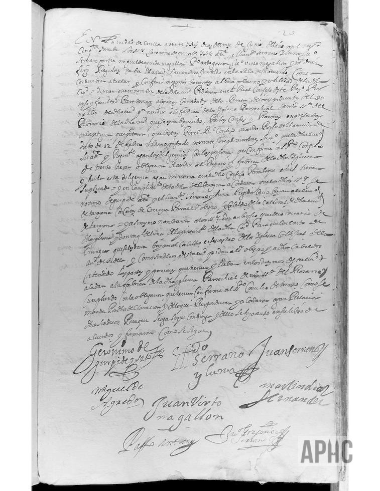 En la Ciudad de Corella a 26 de junio de 1659, los señores Jerónimo de Gúrpide y Soto, Alcalde; el Licenciado Juan Serrano y Luna, Juan Serrano García, Miguel de Ágreda Magallón, Pedro Virto Gascón, Juan Virto Magallón y Martín Díaz Fernández, Regidores de la dicha Ciudad, habiéndose juntado en la sala de su acuerdo, como acostumbran a tratar y conferir, negocios tocantes al buen gobierno y utilidad de la dicha Ciudad, dijeron que, en nombre de la dicha Ciudad, pidieron en el Real Consejo de este Reino, permiso y facultad para tomar algunas cantidades de la Renta de los expedientes del donativo de dicha Ciudad, para acudir a la fábrica de la Iglesia Parrochial de Ntra. Sra. del Rosario, que se está haciendo, por las causas y razones expresadas en la petición que presentaron, que vistas por el Real Consejo, mandó por fin declaración de data de 12 de febrero último pasado para ante Joseph Martínez, su secretario, que la dicha Ciudad, su Alcalde y Regimiento, hagan las diligencias con las personas que, conforme al Concilio de Trento, tienen obligación de acudir al preparo y fábrica (construcción) de la dicha Iglesia, y hecha esta diligencia, hagan memoria, en el dicho Consejo, para lo que en él tienen suplicado; y en cumplimiento de la dicha declaración, acordaron que los señores Jerónimo de Gúrpide, Alcalde y el Licenciado Serrano y Luna, Regidor cabo, vayan a la ciudad de Tarazona, con cartas de creencia para el Sr. Obispo y Cabildo de la catedral de dicha ciudad de Tarazona; y asimismo nombraron a los señores don Ambrosio Escudero, Vicario de dicha Iglesia y don Miguel de Luna, del Ayuntamiento de la Ciudad, para que con carta de Creencia que se les dará, vayan al Cabildo Eclesiástico de la Iglesia Catedral de Tudela y como Síndicos de esta Ciudad, pidan al Obispo y a dichos cabildos, atendido las partes y porciones que tienen que llevar en los diezmos de esta Ciudad, acudan a la fábrica de la Iglesia Parrochial de Ntra. Sra. del Rosario y cumpliendo con la obligación que tenía, conforme al recordado Concilio de Trento, como se manda por dicha declaración y de lo que respondieren y acordaren, hagan relación dichos Síndicos, para que se haga lo que convenga, y de ello se hizo auto en este libro de acuerdos y firmaron como se sigue.