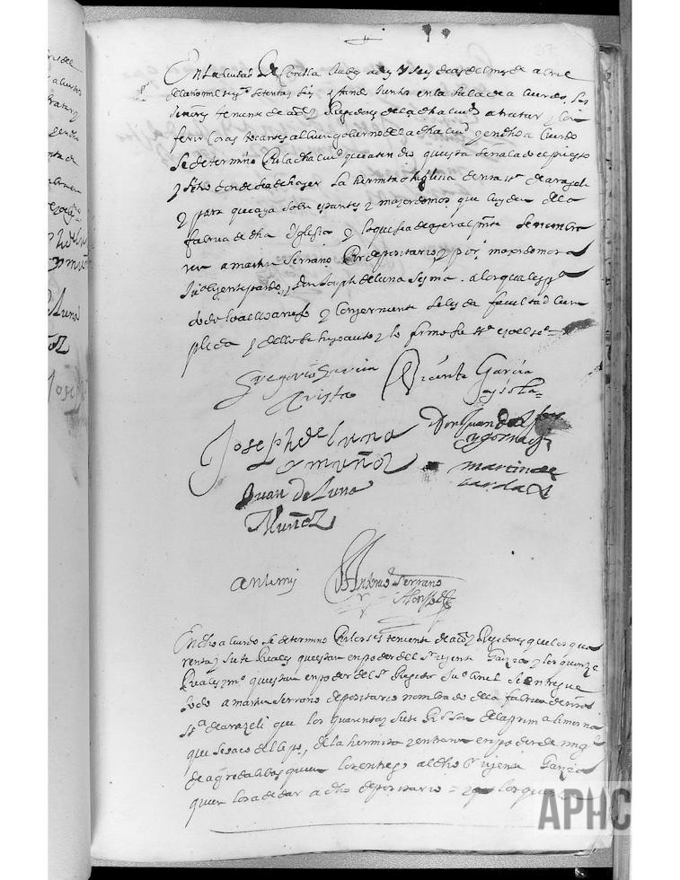 Señalado el sitio donde se ha de hacer la ermita e iglesia de Ntra. Sra. de Araceli y para que haya sobrestantes y mayordomos que cuiden de la fábrica de dicha iglesia, se nombraron a Martín Serrano por depositario y por Mayordomos a Juan Vicente Pardo y Joseph de Luna Sesma.