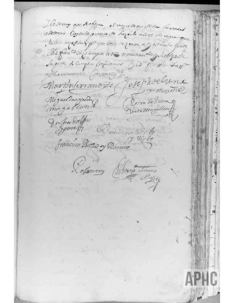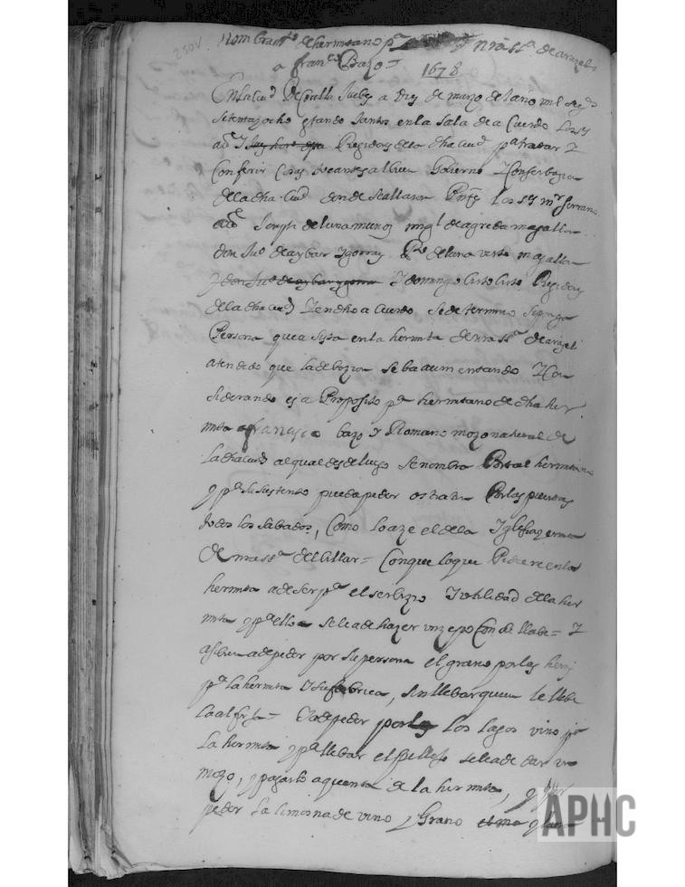 Atendido que la devoción se va aumentando, se nombra ermitaño de Ntra. Sra. de Araceli a Francisco Bazo y Romano, mozo natural de esta Ciudad, y que para su sustento pueda pedir por las puertas todos los sábados como lo hace el de la iglesia y ermita de Ntra. Sra. del Villar. Con que lo que pidiere en la ermita ha de ser para el servicio y utilidad de la ermita y para ello se ha de hacer un cepo con llave. Y así bien ha de pedir por su persona el grano por las eras para la ermita y su fábrica, sin llevar quien le lleve la alforja. Y de pedir por los lagos, vino para la ermita y para llevar el pellejo se le ha de dar un mozo y pagarlo a cuenta de la ermita, y pedir la limosna de vino, grano y lana y lo demás que se ofrezca, el mayordomo de la ermita ha de tener cuidado parecido de hacerle caso siempre que hubiere necesidad para que vaya decente. Y estando presente Francisco Bazo, aceptó este nombramiento y se obligó de su parte a cumplir con su señor.