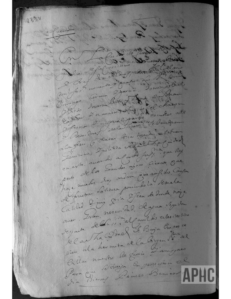 Se acordó que, respecto de los “grandes aires cierzos” que hace muchos días andan, han sido causa de frustrar la tierra y ponerla de mala calidad, y la gran necesidad de agua, se pida, de parte de sus señorías, al Cabildo Eclesiástico, se vaya en procesión a la ermita de la Virgen Santísima del Villar, “nuestro refugio y amparo”, para que se traiga en procesión el día viernes primero viniente, trayéndose a la iglesia parroquial de San Miguel, donde toca, con toda la solemnidad que se ha acostumbrado, para que por su intercesión, su Divina Majestad, nos remedie las necesidades que padecemos y se eche bando público para que todas las cofradías asistan con sus estandartes y hachas.
