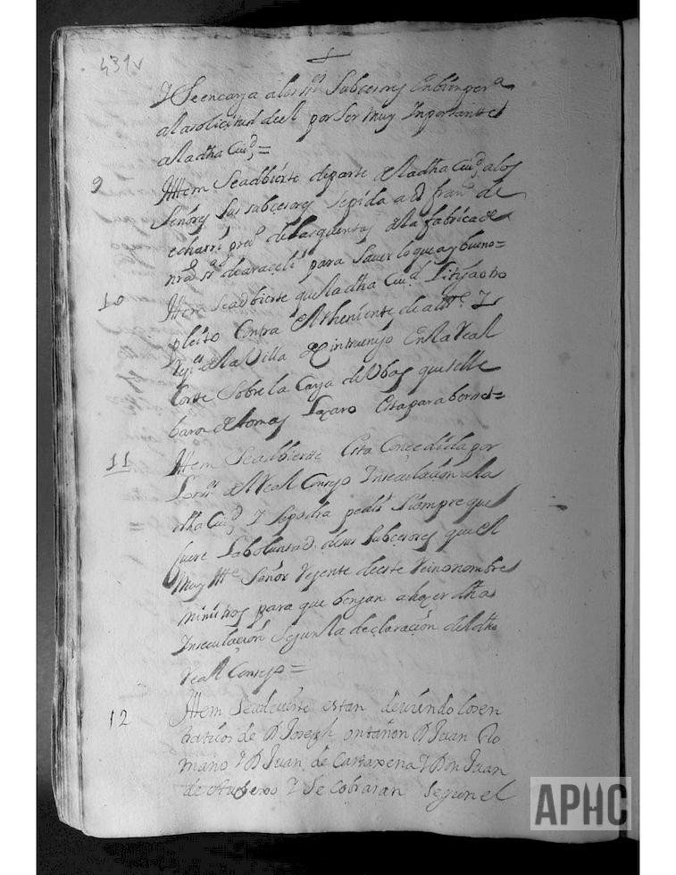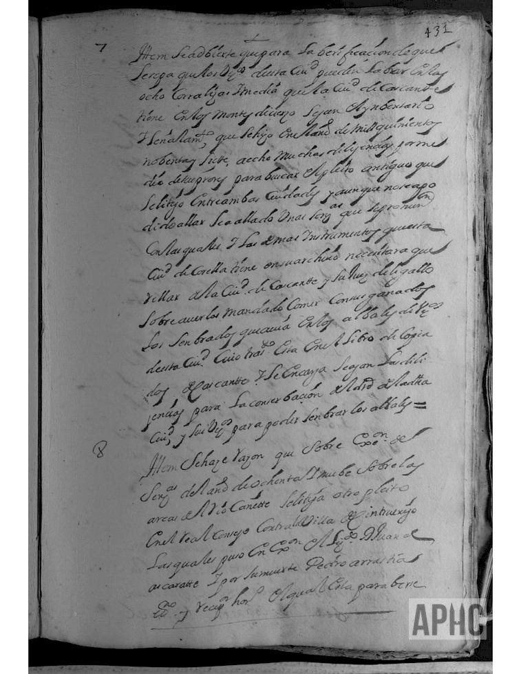 Se hace una relación de los pleitos pendientes y de las advertencias para sus sucesores en el Regimiento.