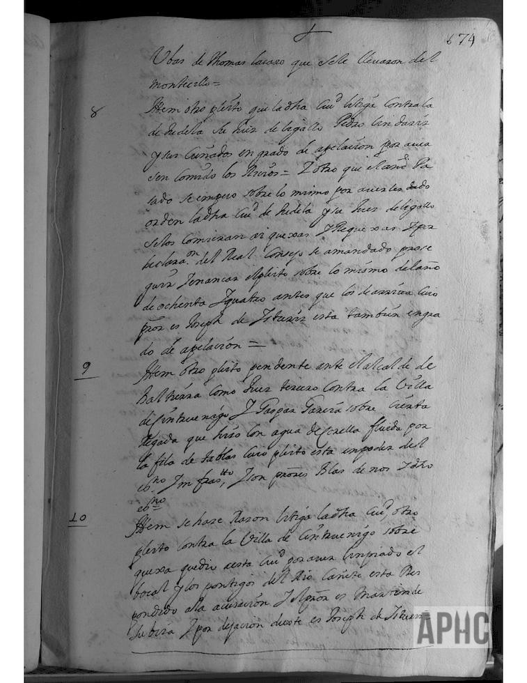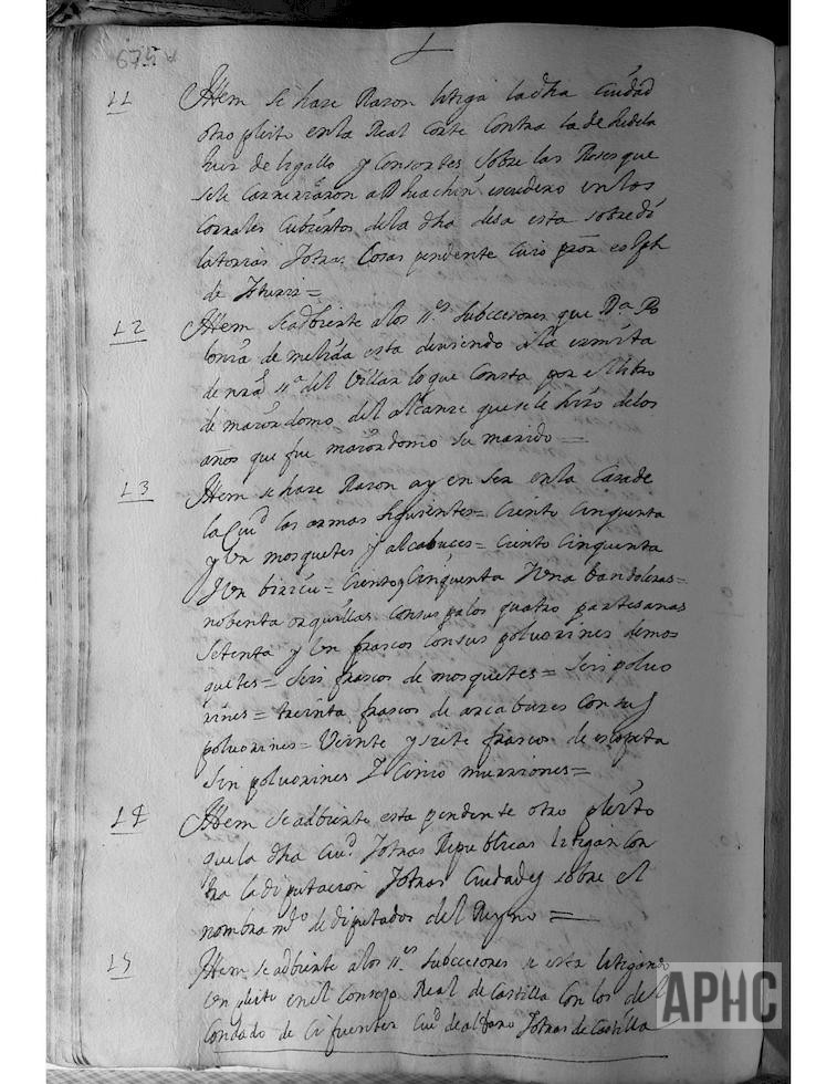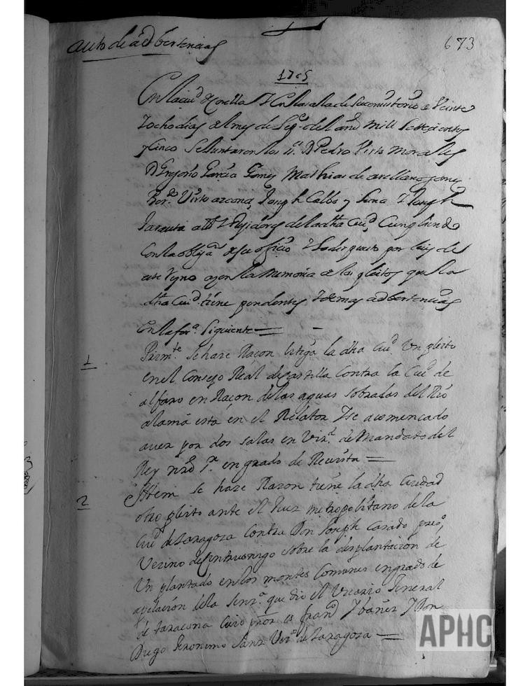 Se hace memoria de las advertencias sobre los negocios pendientes de la Ciudad y relación de las armas que tiene la Ciudad. Entre otros asuntos, cabe destacar que: 1.- Sigue pendiente el pleito en el Consejo de Castilla, contra Alfaro, por las aguas sobradas del río Alhama. 2.- Sigue pendiente el pleito ante el juez metropolitano de Zaragoza, contra el presbítero de Cintruénigo Joseph Casado, por plantación ilegal de viña en montes comunes y que amenazó con excomunión. La relación detalla hasta 19 asuntos pendientes.