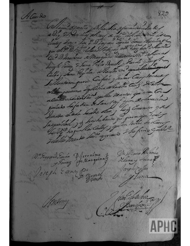 Se acordó que los Maestros que están componiendo la fábrica (obra) de San Miguel, hagan declaración jurada de toda la dicha obra y lo que es menester y de su seguridad. Y que se eche bando, para que todos los vecinos limpien las calles y quiten todos los carros.