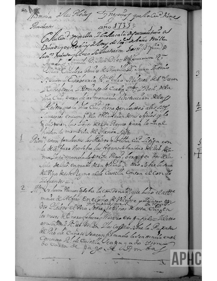 1735-09-28 – Memoria de los pleitos y negocios que la Ciudad tiene pendientes.