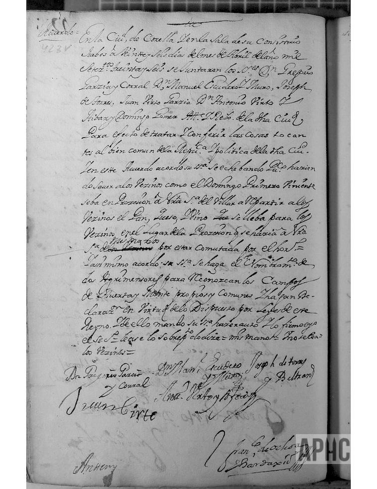 Entre otros asuntos, se acordó se eche bando haciendo saber a todos los vecinos que, el domingo primero viniente, se va en procesión a Ntra. Sra. del Villar, en lugar de que se hacía a Ntra. Sra. de Mismanos, a repartir a los vecinos el pan, queso y vino.