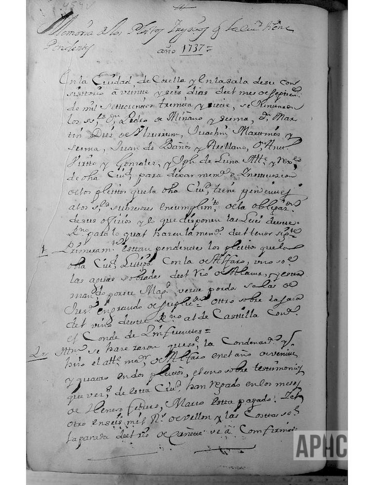 1737-09-26 – Memoria de los pleitos y negocios que la Ciudad tiene pendientes.