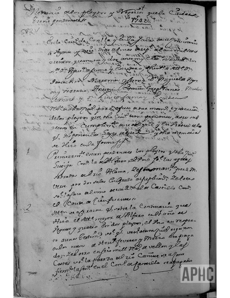 1742-09-27 – Memoria de los pleitos y negocios que la Ciudad tiene pendientes.