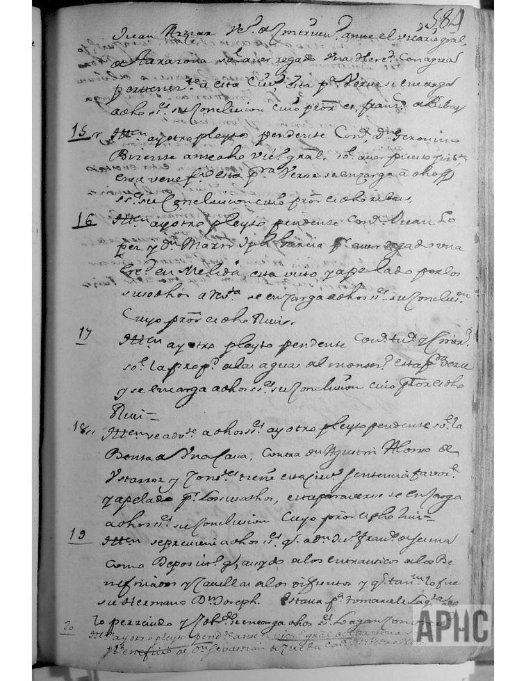 Se juntaron los señores Alcalde y Regidores de la Ciudad, para dejar memoria e instrucción de los pleitos pendientes de la Ciudad, a los señores sus sucesores, en cumplimiento de la obligación de sus oficios y lo dispuesto por leyes de este Reyno, por lo cual hacen la memoria de la manera siguiente: (Se detallan en número de 23).