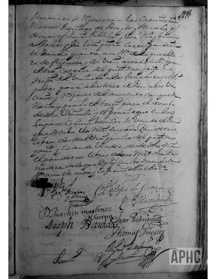 A los acuerdos de dicha sesión, se añade acuerdo aparte, sobre notificación de Thomás Iñiguez, Regidor semanero, sobre que había notado que el tocino fresco que se vende en la tienda (pública), no era de la mejor calidad, en su inteligencia, y deseando su Señoría que a los vecinos se les abastezca por el arrendador de dicho abasto, de buena calidad, se acordó que, por Antonio Arellano y Juan Mari Romeo, vecinos de esta Ciudad, se reconozca toda la provisión de tocino, así fresco como salpresado y seco, que tiene para el abasto, que tiene al Arrendador para el abasto de los vecinos, y que hagan su declaración.