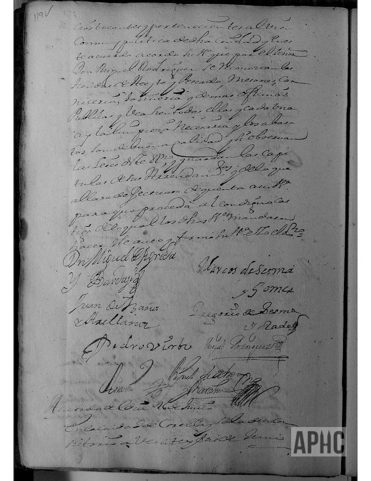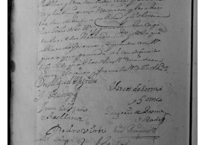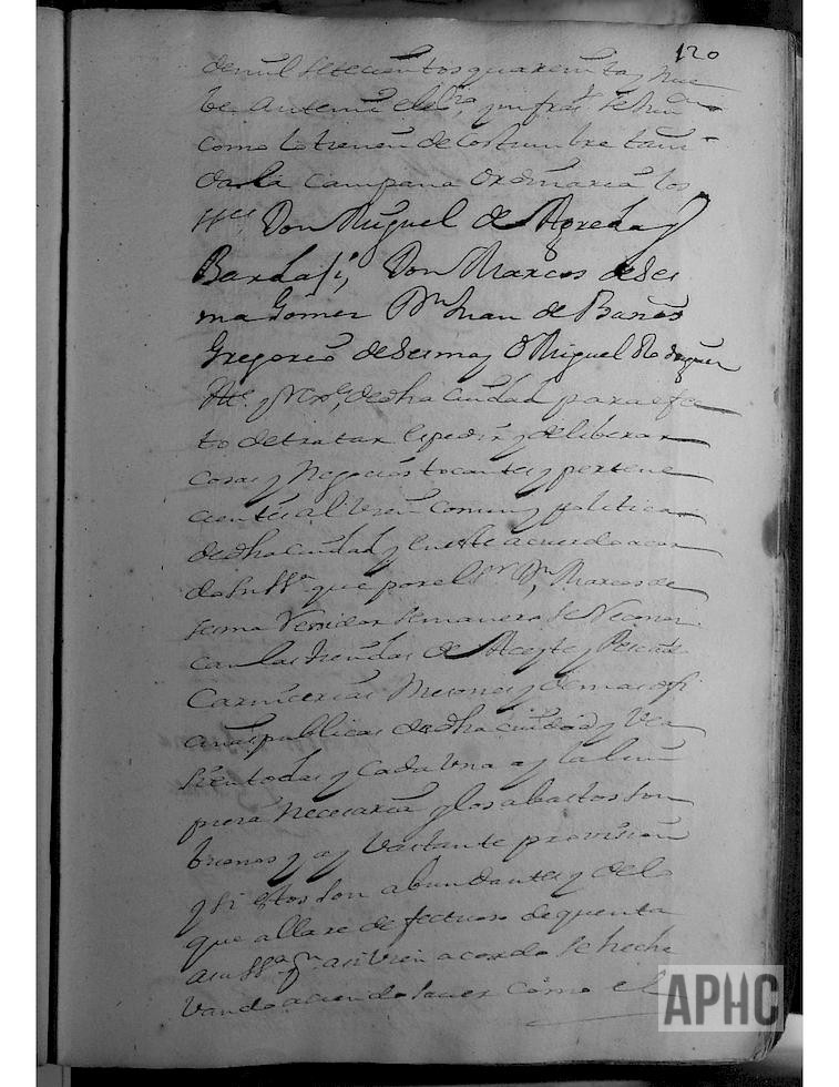 Entre otros asuntos, se acordó que ninguna persona sea visada de jugar a la pelota, en la plaza contigua a la iglesia de Ntra. Sra. del Rosario y calle pegante a la iglesia de San Miguel de esta Ciudad, en ningún día del año, bajo la pena de 8 reales por cada vez. (Domingo Virto Cueva y Juan Francisco de Sesma, son presbíteros de las dos iglesias).