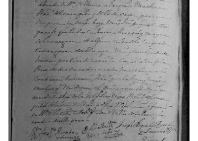 Entre otros asuntos, se acordó se despachen carteles a las ciudades de Pamplona, Tudela y Cascante y villa de Falces, haciendo saber que el próximo día 8 de Noviembre, dará principio a la oposición del Magisterio de Capilla de las dos iglesias parroquiales, haciendo saber la renta y cualidades que ha de tener, y así bien acordaron que Francisco de Biña, presbítero maestro de Capilla de la Santa Iglesia Catedral de la ciudad de Calahorra, sea juez que examine a los que concurran a la oposición. Que se llame a Gregorio Matheo, arrendador del Garapito y se le dé orden para que no permita se elabore vino tinto, en otro paraje que en los en bares abiertos.