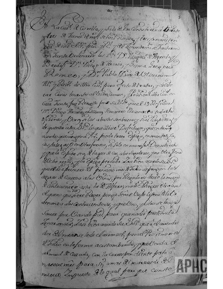 Con asistencia del Escribano público, real y del Ayuntamiento, se juntaron, en junta ordinaria los señores D. Miguel Ágreda y Bardají, D. Diego de Arcaya y Sesma, Gregorio Romeo y D. Pablo Díez de Ulzurrun, (también es Regidor Luis de Sesma y Escudero), Alcalde y Regidores de esta Ciudad y entre otros asuntos, acordaron que, ninguna persona pueda traer espiga, en mantas, sacos, talegas o en otras formas, sí sólo en manojos des