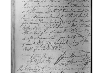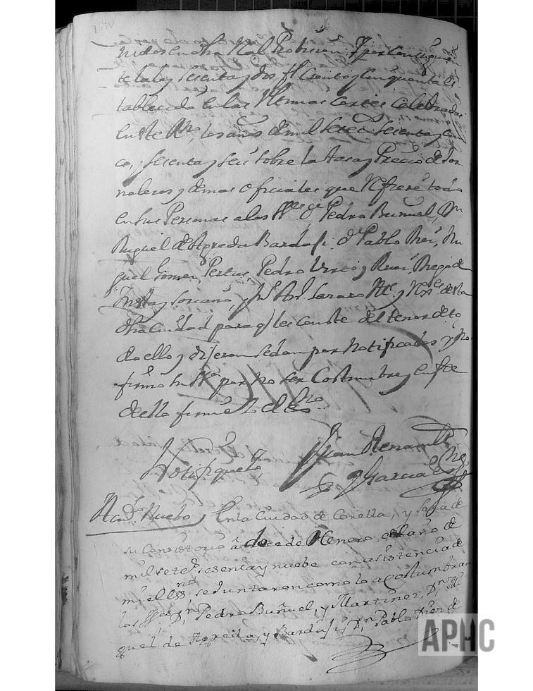 Con asistencia del Escribano del Ayuntamiento, se juntaron como de costumbre, los señores D. Pedro Buñuel y Martínez, D. Miguel de Ágreda Bardají, D. Pablo Díez de Ulzurrun, Miguel Gómez Pertus, Pedro Virto, Diego Inesta y Soriano y Juan Antonio Lázaro, Alcalde y Regidores de esta Ciudad, y, entre otros asuntos, doy fe yo el Escribano les leí a su Señoría, en esta Junta, las Ordenanzas del buen Gobierno que se hallan en el Libro Primero de la Novísima Recopilación en folio 507 y siguientes, el auto acordado por el Real y Supremo Consejo de este Reino, sobre fuerza de legos intestados y disposiciones de sus bienes; como así bien las dos Reales Provisiones sobre pesos mancales y dinerales y demás que comprenden, como también la Real Provisión inserta en ella, las Bulas Apostólicas sobre extracción de los reos de lugar sagrado, y las que van Providencia para extraerlo; el auto acordado y Real Provisión sobre armas de fuego, cortas, pistolas, guiferos, navajas y cuchillos de punta y se prohíben armas que comprenden; como también la Real Provisión sobre Pragmática de trajes; como asimismo la Real Provisión inserta, la Real determinación que manda no se permita salir a los dominios de España, a clérigo ni fraile español que no presente licencia de Su Majestad; como igualmente la Real Provisión que manda a los Alcaldes y demás que expresa, dar cuenta al Fiscal Mayor de los delitos que contiene; como también la carta de orden del Excmo. Sr. Conde de Gajes, virrey que fue de este Reino, para que se le dé sobre desertores; asimismo la Real Provisión para que las justicias de este Reino, den aviso de todas las vacantes que se tienen de beneficios que hubiere y de otras plazas públicas que comprende; así bien la Ley 42 del cuaderno de las últimas Cortes, que trata sobre compras y ventas de uvas y mosto; y así mismo, el Despacho librado por el Real Consejo de Instancia del Sr. Patrimonial, de 28 de noviembre de 1766, que manda den declaración jurada el estado en que dejaren los caminos, al concluir sus empleos, de todo lo cual quedó advertida su Señoría.