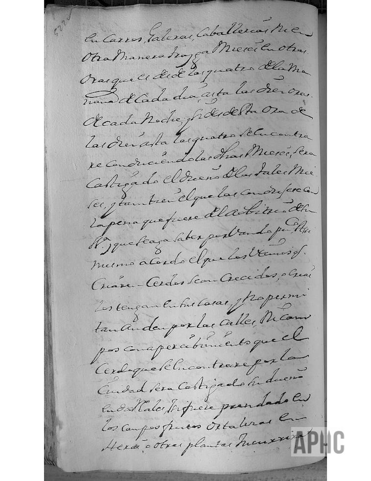 Entre otros asuntos, y deseando prevenir los perjuicio que se origina de noche, en los frutos de mieses, haciéndolos en hora irregulares, se manda que ningún vecino, carretero ni peón, en carros, galeras, caballerías, ni en otra manera, traigan mieses, en otras horas que es desde las 4 de la mañana de cada día, hasta las 10 horas de cada noche, y si desde esta hora de las 10 hasta las 4, se encontrare conduciéndolas dichas mieses, será castigado el dueño de tales mieses y también el que las condujere, la pena que del arbitrio de su Señoría, y que se haga saber por bando público.