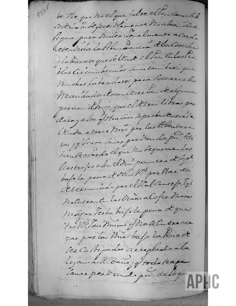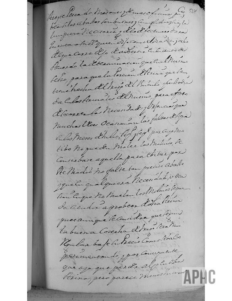 Entre otros asuntos, se acordó que, la porción de harina que se tiene hecho del trigo del Vínculo y custodiada en los almacenes del mismo, para efecto de socorrer las necesidades y urgencias que muchas veces ocasiona la falta de agua, en los meses de Julio, Agosto y Septiembre, por cuyo motivo no pueden moler los molinos, se conservase para que no faltase el abasto de harina y por tanto asegurar el abasto de pan.