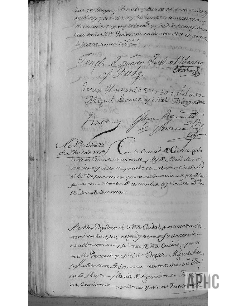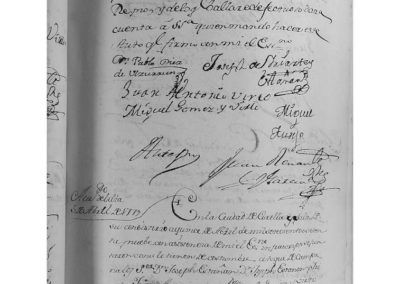 Entre otros asuntos, se determinó que, se haga una parada en el río de las Minas y que se guarden las aguas y dicha parada, para que no se usurpen para los vecinos de Cintruénigo, en campo de la Sierpe, y que para ello se pase recado al Depositario Interventor. Se ha hecho presente por Juan Esteban Jiménez, hornero que es del de pan cocer llamado del Mercado, que no puede cumplir con su obligación, por faltarle la asistencia de su madre, que la tiene gravemente enferma e imposibilitada, para que su Señoría determine lo que convenga, y se nombró hornero del horno del Mercado a Bernardo Garbayo, vecino de esta Ciudad. Se acordó que ningún vecino ni habitante, venda el salvado a más precio de 5 maravedís el almud, y que ninguna panadera ni persona que lo vendiese, lo pase por cedazo de cerda, como lo pasan, según se ha dado noticia a su Señoría que lo ejecutan.