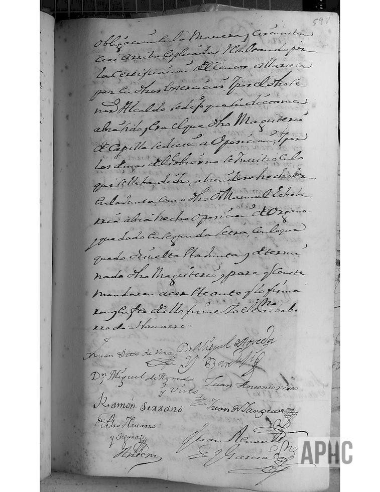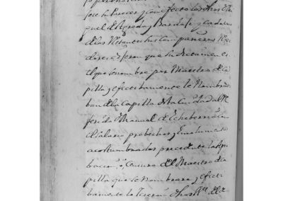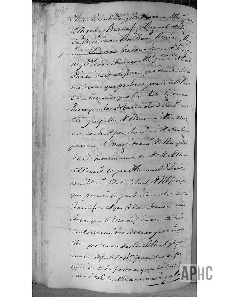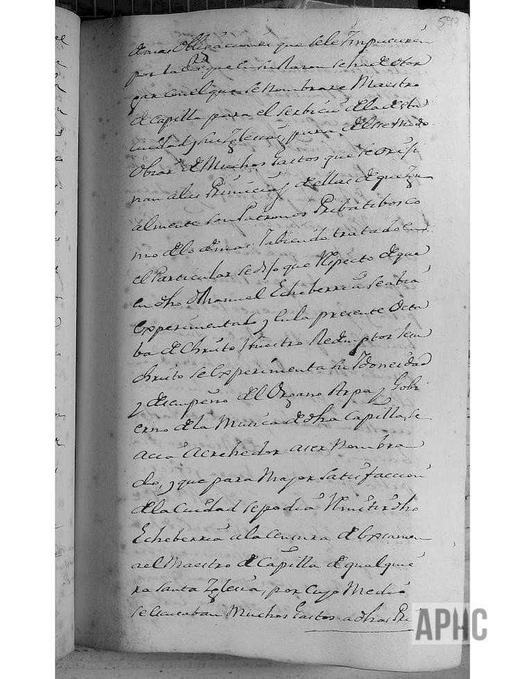 1780-05-30 – Nombramiento de Maestro de Capilla a Manuel Echeverría. Teniendo que proveer por sí, a solas, como Patronos que son de las Iglesias Parroquiales de esta Ciudad, sus piezas eclesiásticas y Capilla de Música, con independencia de otro copatrono, el Magisterio que se sirve interinamente, desde el 5 del corriente por Manuel Echeverría, vecino de la ciudad de Alfaro, habiendo de estar sujeto el que se nombrare, a las actas que se modificaron el año 1775, que están presentadas en el Real y Supremo Consejo de este Reino, para su confirmación, en la forma que se determinare y a las demás obligaciones que se le impusieren, al que se nombrare Maestro de Capilla, para el servicio de esta Ciudad y sus Iglesias, para de este modo obrar de muchos gastos que se originan a las primicias de ellas de que actualmente son Patronos privativos, se dijo que, respecto de que en dicho Manuel Echeverría, se había experimentado en la presente Octava de Cristo Nuestro Redentor Jesucristo, su idoneidad y desempeño del órgano, arpa y gobierno de la música de dicha capilla, después de debatir el tema, por varios Regidores se expuso su nombramiento provisional y que por el maestro de Capilla de la Iglesia Catedral de Tarazona, se le examine sobre órgano, arpa y composición; por el Sr. Alcalde se dijo que su dictamen era que dicho Magisterio de Capilla se diere a oposición y como se expresó que dicho Manuel Echeverría, había hecho oposición de órgano, quedó disuelta esta Junta.