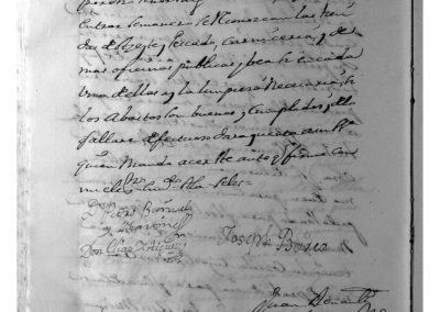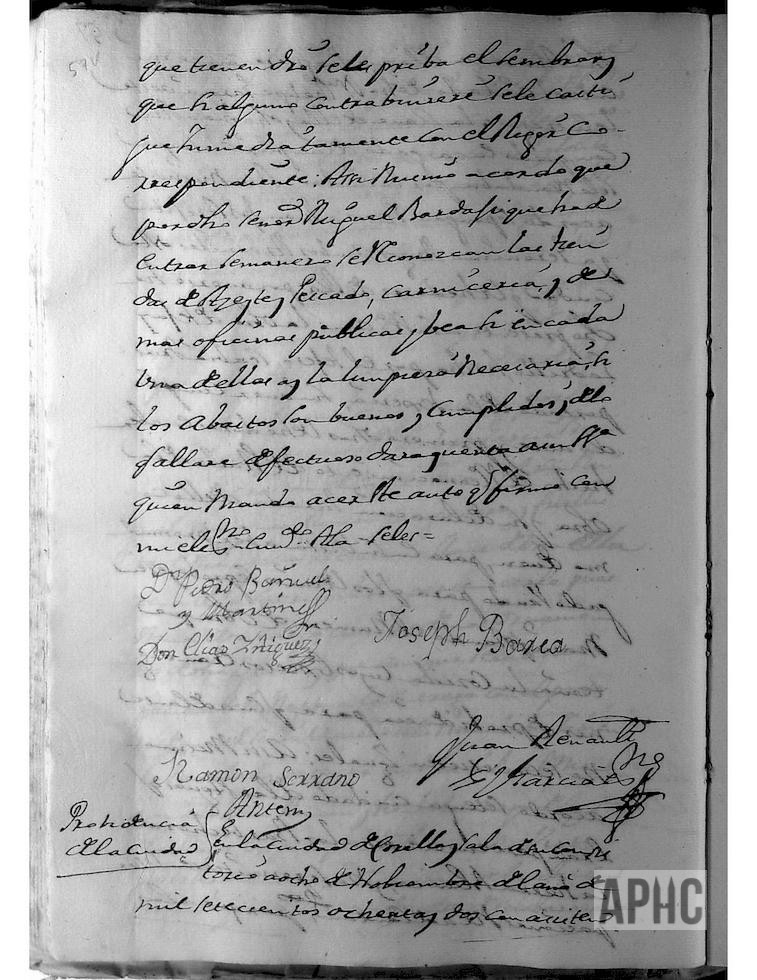 Se reunieron los señores Alcalde y Regidores, para determinar sobre la prisión de Juan Joseph Arigita y de Jerónimo Argós, veedores de albañiles nombrados por su Señoría, que son los contenidos en el auto antecedente del día de ayer y otros negocios. En esta Junta se hizo presente que, Juan Rincón, alias “Monterillas”, sirviente campanero y fuel lista de la iglesia parroquial del Arcángel Señor San Miguel, no había cumplido en entregar la llave de la alacena de dicha Iglesia a Phelipe García, presbítero sacristán de ella, como se la había mandado en auto del pasado día 7, y dicho Juan Rincón, había cooperado en grave delito de inobediencia al respeto de la Ciudad, entregándole dicha llave al señor Vicario de dicha Iglesia, Antonio de Ágreda y Altabas, que había manifestado al Sr. Alcalde y algún Regidor, que tenía que comunicarles algo al cuerpo de Ciudad, y habiéndole llamado, expuso que noticioso del mandato de su Señoría, para que Juan Rincón entregase la llave de la alacena a dicho Phelipe García, sacando de la alacena el aceite de la santa reliquia para los nublados, que lo custodiaba de su orden, se la había pedido a Juan Rincón y obraba en su poder, hasta tanto de hacérselo presente al gobierno de la Ciudad, quien como ofendida del dicho Juan Rincón, terminada la Junta, se mandó poner preso a Juan Rincón en la cárcel pública, hallándole fuera de lugar sagrado, para ello dio orden a sus ministros de justicia. Se les dio cargo a los dichos Juan Joseph Arigita y de Jerónimo Argós, quienes manifestaron lo que había pasado sobre la obra, y sin embargo se les apercibió para que en adelante cumplieren con la obligación que tenían de haberle dado cuenta, cuando vieron que si haber hecho el reconocimiento, se la llevaban carros de esta Ciudad y de Cintruénigo, y puestos en libertad, se dio orden a dichos ministros de justicia, para que procediesen a la prisión de Pedro Garay, tejero, para averiguar la verdad de lo ocurrido sobre la hornada de dicha tejería. Por los ministros de justicia se informó de que tenían preso a Juan Rincón “Monterillas”.