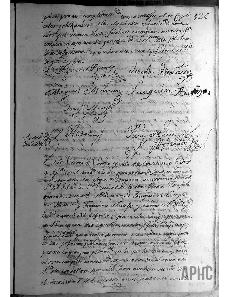 Entre otros asuntos, se acordó que ningún vecino pueda entrar a las viñas a coger moras, caracoles, ni con otro pretexto alguno, pena de 4 reales. Que tampoco se pueda entrar en ellas a cazar, con perros o sin ellos, ni aun a coger la caza que cayere muerta a las mismas, bajo la pena de la ley. Que no se puedan coger uvas para vender en esta Ciudad, ni llevarlas a ese efecto a ningún otro pueblo. Que tampoco se puedan llevar moscateles a vender, fuera de esta Ciudad, sin licencia firmada por el Regidor preeminente y el Escribano del Ayuntamiento.