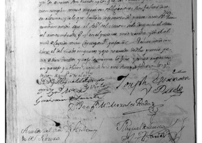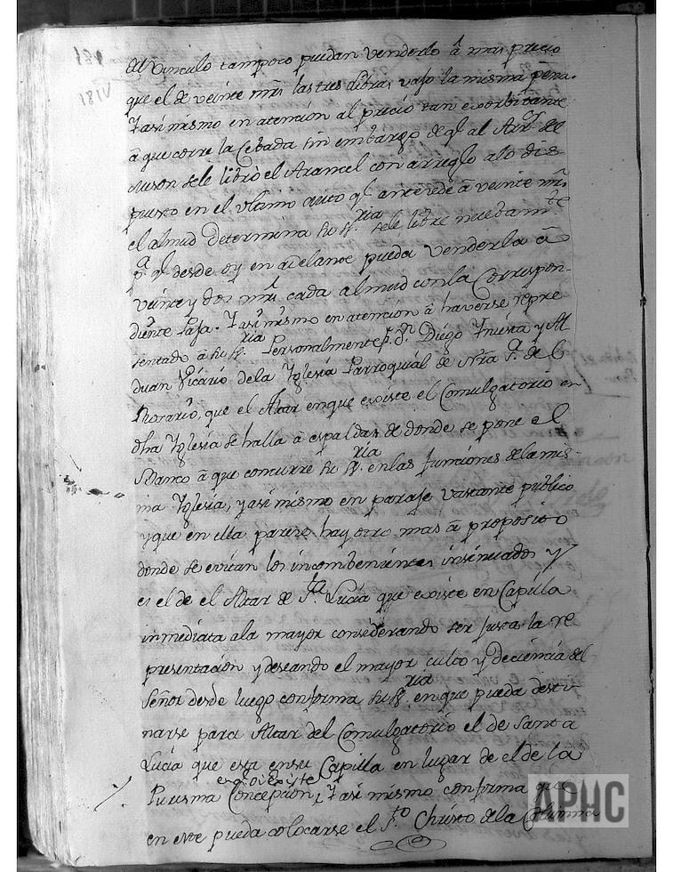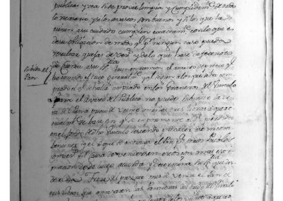 Entre otros asuntos, se acordó que el pan de 3 libras, se venda a 21 maravedís, en lugar de a los 20 que ahora se vende. Se accede a la petición del Vicario de la Parroquia de Ntra. Sra. del Rosario, Diego Iniesta y Alduan, sobre traslado de comulgatorio de la capilla de la Purísima Concepción, a la de Santa Lucía, capilla existente en la inmediata a la mayor; y así mismo que en este pueda colocarse el Cristo de la Columna, que se halla en la sacristía de dicha Iglesia. (Seguramente se trata de la escultura “Cristo atado a la columna”, la más importante de nuestra procesión del Viernes Santo, que estaba relegada en la Sacristía). Que se haga una sotana para cada Parroquia, igual a la que tiene cada uno de los monecillos de ellas, para que se use con uniformidad en los oficios divinos. Que para tres infantes o tiples de la Capilla de Música, se hagan sotanas, roquetes y bonete, aquellas y este (sotana y bonete) colorado, para que la usen en los oficios divinos tan solamente y en los actos en que asiste la Capilla de Música, encargándose de su custodia el Maestro de Capilla.