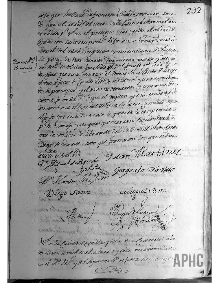 Entre otros asuntos, en atención de que de algunos años a esta parte, con orden del Provisor y Vicario General de la ciudad de Tarazona y su Obispado, se perciben por la persona que ha destinado los 400 reales que paga cada individuo que entra Beneficiado a cualquiera de las Parroquias de esta Ciudad, los cuales están destinado para ornamentos y culto de dichas Iglesias, y que durante muchos años se percibieron por el Primiciero o persona designada por su Señoría, en virtud del Patronato que tiene en dichas Iglesias, y que se invertían, con su orden y dirección a beneficio de éstas, y habiendo solicitado, por medios urbanos (¿civiles?) que dicho Provisor de Tarazona renunciase a dicha percepción, como anteriormente se hacía, pasando a poder de Corella, y no accediendo a dicha solicitud, se acordó se inicie recurso, hasta conseguir el derecho, y poder aplicar los 400 reales, como anteriormente se hacía.
