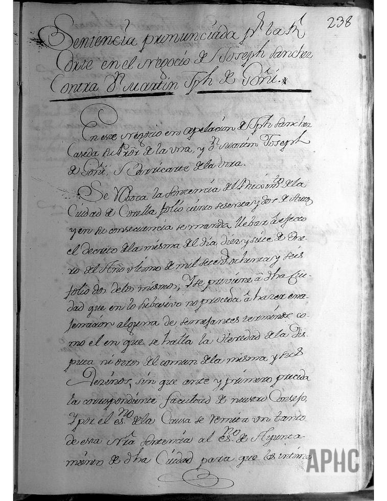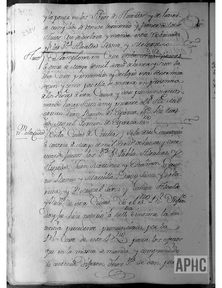 Se recoge Sentencia pronunciada por la Real Corte, en el negocio de Joseph Sánchez contra D. Martín Joseph de Goñi. El Auto correspondiente y la Sesión del Ayuntamiento, en la que el Escribano infrascrito, hizo notoria a su Señoría, la sentencia precedente.