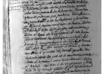 Entre otros asuntos, y cumpliendo con lo dispuesto en la ley 52 de las penúltimas Cortes, sobre dar precio a los laborantes Jornaleros, Oficiales y demás, que previene, señalaron de jornal ordinario a los trabajadores jornaleros 2 reales, con la precisa condición de haber de salir al trabajo a las a las 7 ½ de la mañana, y volver al toque de la campana; A cada yunta que se empleare en barbechar, saliendo y volviendo a las mismas horas, se les señala 6 reales de jornal diario, y si se empleare en sembrar, 7 reales; Así bien se señala a los sastres, 3 ½ reales de jornal, trabajando desde las 7 de la mañana hasta las 7 de la tarde, en cuya hora deberán dejar el trabajo; Así bien a los carpinteros y albañiles, se les señala 4 reales fuertes, de jornal diario, a cada uno, habiendo de empezar a trabajar a las 7 de la mañana y continuar durante la luz del día, y en cuanto a los demás oficios, sus jornales y tiempos de trabajo se guarde la costumbre y que se publique por bando público.