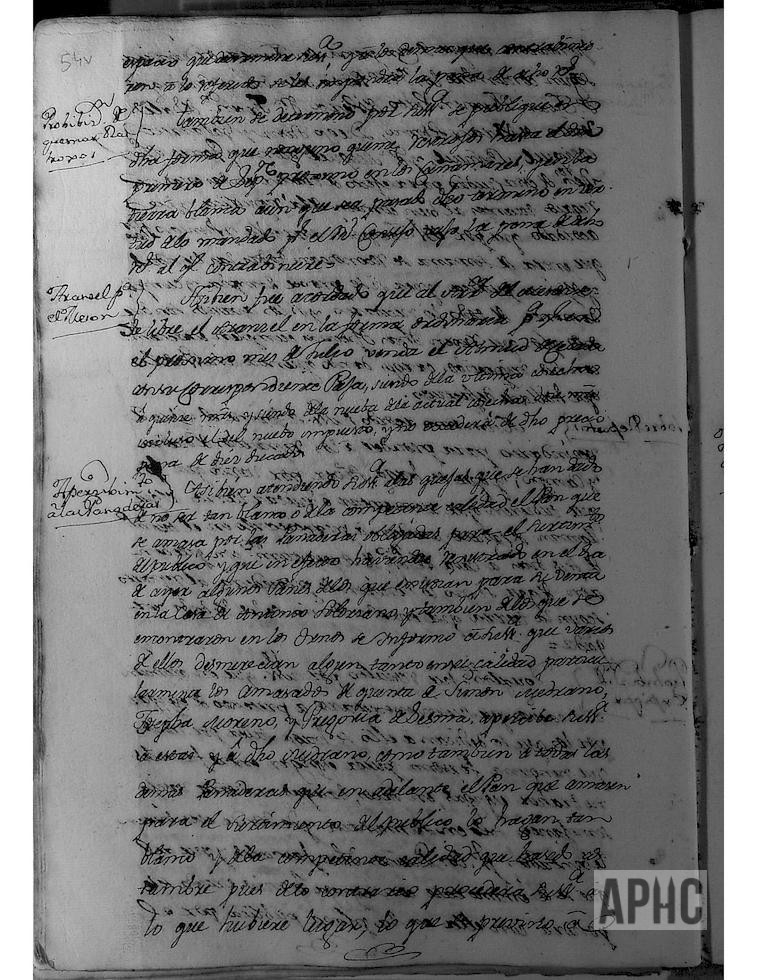 Entre otros asuntos, se acordó que, ninguna persona pueda espigar entre fascales, ni traer espigas en sacos, talegas, ni otras vasijas semejantes, sólo en samantas y de dónde estuvieren levantadas por los dueños dichos fascales, y que al que se le encontrare con espiga o mies hurtada, se le expondrá con ella en la plaza pública, por el espacio que determine su Señoría. También, ante las quejas sobre baja calidad de los panes vendidos en casa de Antonio Solorzano y encontrados en varios hornos, desmereciendo en calidad los amasados de cuenta de Simón Medrano, Josepha Moreno y Gregoria de Sesma, se apercibe a todos ellos y al resto de panaderas, que lo hagan blanco y de la competente calidad que ha sido costumbre, pues de lo contrario, se procedería a lo que hubiese lugar.