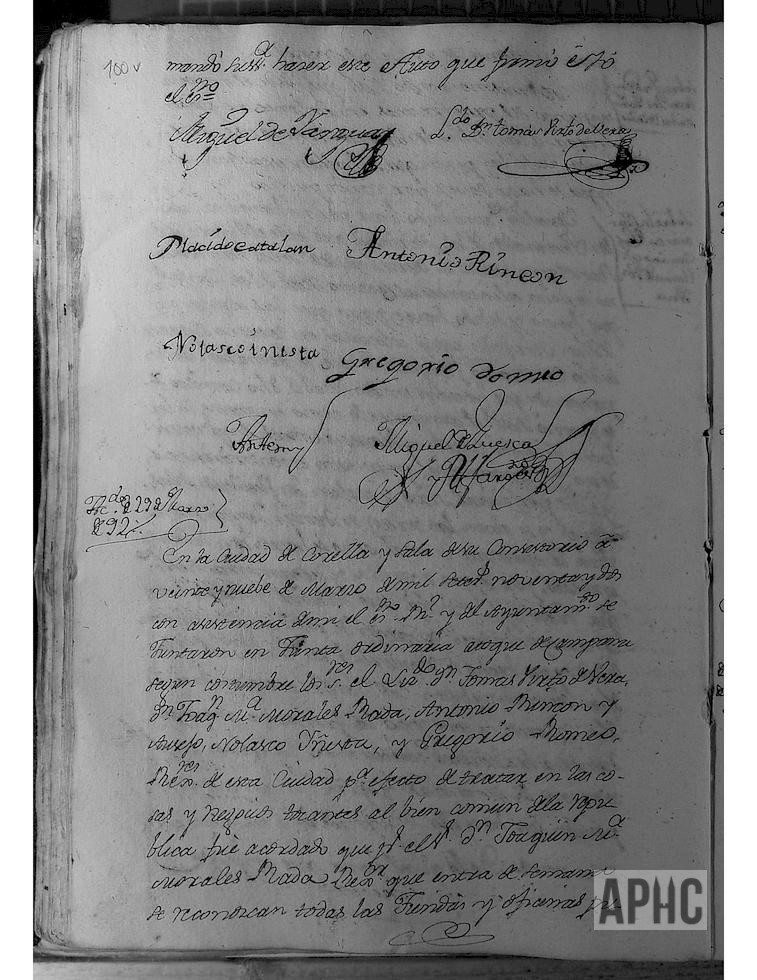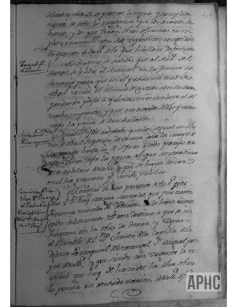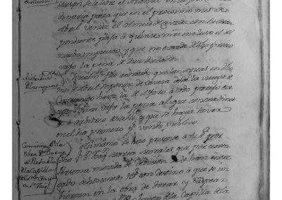 Entre otros asuntos, se notificó por Joaquín María Morales que, por cierta persona devota se la habían entregado 800 reales, con destino a que se inviertan en la obra de dorar y jaspear el retablo del Santísimo Cristo, de la capilla de la iglesia parroquial del Arcángel San Miguel, propia de la Ciudad y solicitaba autorización para realizar dicha obra. Debatido el asunto, se acordó encomendar a dicho Sr. Morales contrate la realización de dicha obra, utilizando si fuese necesario alguna otra cantidad, que obran en su poder de limosnas dada con destino a dicho retablo.