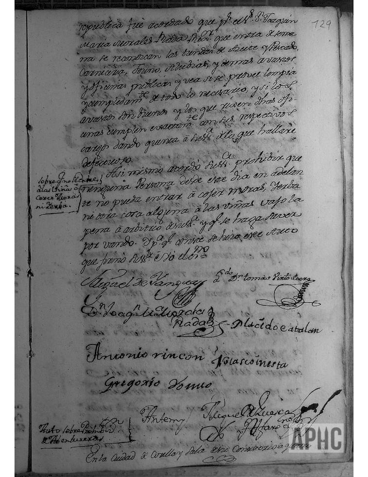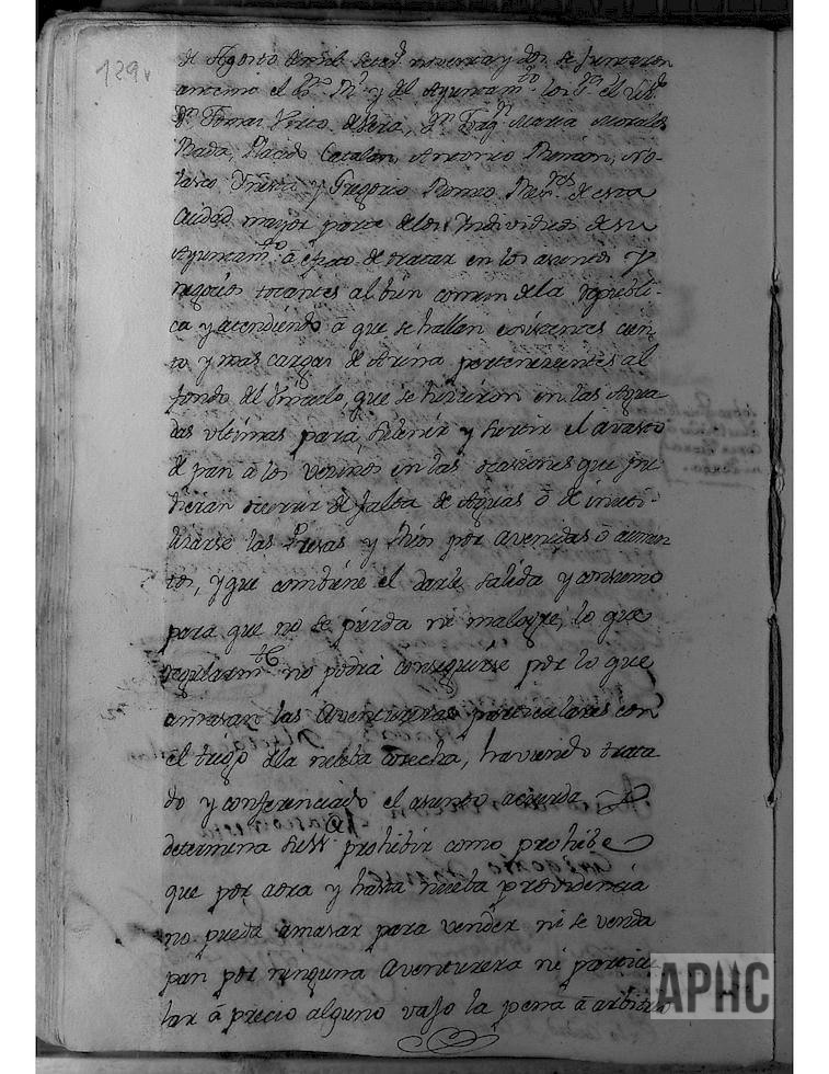 Para dar salida a la harina del Vínculo, preparada en previsión de falta de agua en los ríos para moler trigo en los molinos, se acuerda prohibir la venta de pan a particulares y únicamente se amase por las panaderas obligadas, que llevarán el pan a casa de Nicolás de Sierra, para su venta, que se realizará a 19 maravedíes el pan de 3 libras, sin que se pueda vender en otro paraje alguno, bajo la pena a arbitrio de su Señoría.