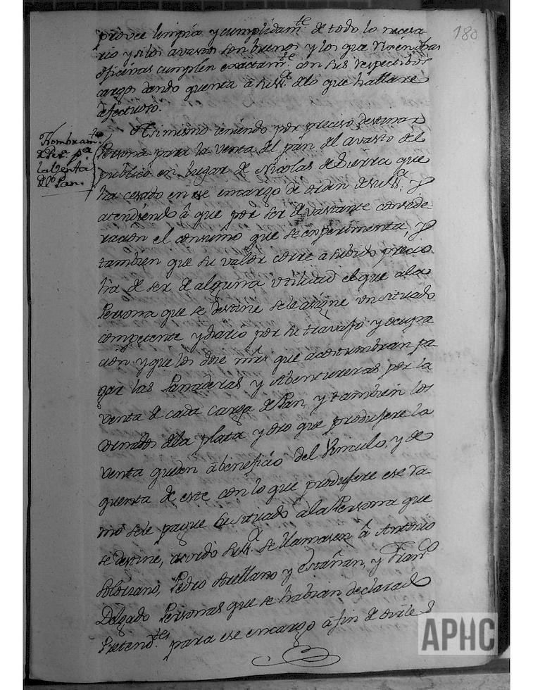 Entre otros asuntos, se acordó que, habiendo sido cesado por su Señoría, Nicolás de Sierra, para la venta de pan y tratando las solicitudes existentes, se acordó con Francisco Delgado, para que realizase la venta del pan que se amase por cuenta del Vínculo y por los particulares, percibiendo 5 reales fuertes diarios, y quedando a beneficio del Vínculo lo que las panaderas venían pagando, que era de 12 maravedíes por cada carga de pan, más los beneficios de los cornados de la plata y oro que recogiere la dicha venta. Este nuevo sistema se hacía de forma provisional y caso de no obtener beneficio el Vínculo, se trataría del sistema anterior. Sobre lo que se define como “beneficios de los cornados de plata y oro”, entiendo se refiere a que si por la venta de pan, se recaudaban monedas de oro o plata, estas pasaban a la caja del Vínculo. Era importante disponer de monedas de plata y oro pues siempre mantenían su valor y eran admitidas por todos, a diferencia de las monedas de cobre, lo que llamaríamos calderilla, que no siempre eran aceptadas por todos. De hecho, por las Diputaciones y otros centros oficiales de recaudación, cuando se abonaban las cantidades que correspondían por contribuciones u otros impuestos, se indicaba el porcentaje que se debía abonar en oro y plata, que era la mayor cantidad, quedando muy limitada la cantidad a entregar de calderilla.