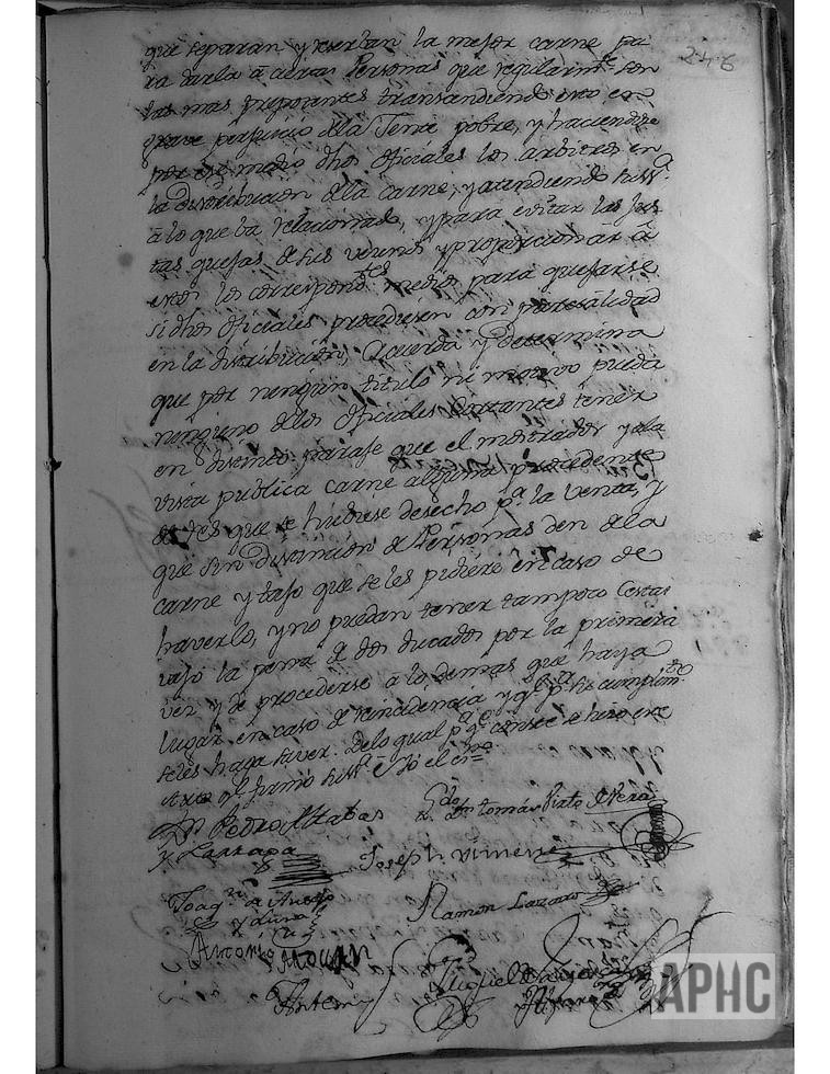 Teniendo noticias de quejas sobre el funcionamiento de los oficiales de la Carnicería, que parece reservan ciertas partes de la carne a la venta, para los más pudientes, en detrimento de los más pobres, se acuerda prohibir cualquier reserva de carne en ningún otro sitio que no sea el mostrador, debiendo tener a la vista del público la carne a la venta, no reservándola en cestas, bajo la pena de 2 ducados la primera vez y caso de reincidencia, a lo que proceda. Con fecha 22 de abril, el escribano infrascrito, hace notorio a Bartolomé Andueza y Diego Echeverría Centineda, a cuyo cargo corre la Carnicería, a nombre de Tomasa Echeverría y María Centineda, el auto que antecede.