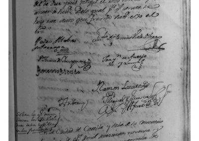 Teniendo noticia de que por los individuos de la Capilla de Música, exigían en los entierros cantidades superiores a las señaladas por su Señoría, se llamó a Pedro Ignacio Pérez, maestro de dicha Capilla de Música de la que su Señoría es única patrona, confirmando que efectivamente cobraban cantidades superiores a las establecidas, aprobadas por el Real Consejo y conocidas por dicho maestro en su toma de posesión de dicha Capilla, advirtiéndole que hasta tanto su Señoría no autorizase modificación alguna, se cobrase las cantidades establecidas en los acuerdos, imponiéndose una sanción de 4 ducados, por cada vez que cobren más de lo establecido. Con fecha 16 de Septiembre y por el escribano del Ayuntamiento, se hace notorio a Pedro Ignacio Pérez, Maestro de la Capilla de Música de esta Ciudad, al acuerdo anterior, para los efectos que contiene y dijo se le dé copia de dicho auto. Firmas de Pedro Ignacio Pérez y de Miguel de Guesca y Alfaro, escribano.