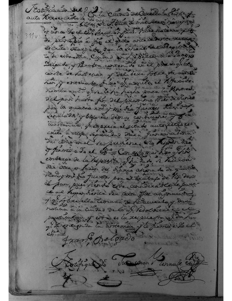 Siendo preciso designar una persona, para la venta de pan que se amase con trigo del Vínculo, se nombra a Francisco Delgado Peralta, vecino de esta Ciudad, con el estipendio de 4 ½ reales fuertes diarios, hasta fin de Junio próximo, quedando a beneficio del Vínculo los cornados de plata que produzca esta venta, así como lo que quede de las panaderas forasteras.