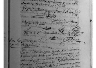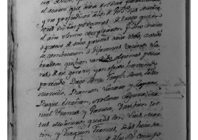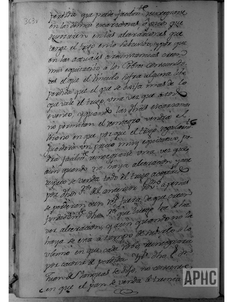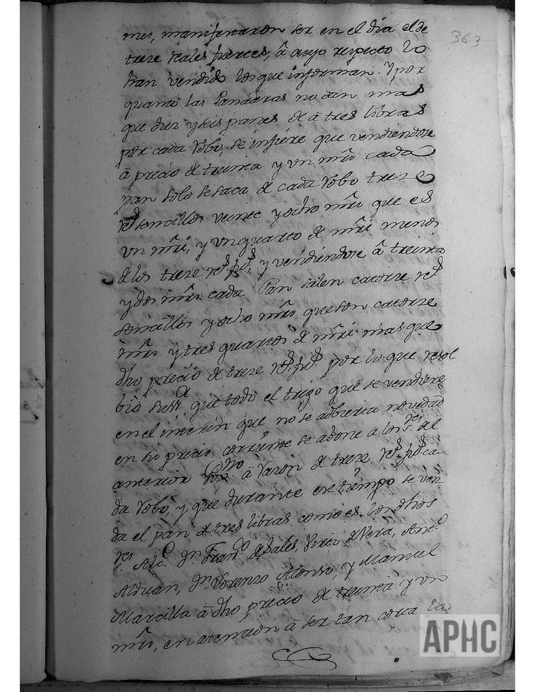 Para tratar sobre el precio del pan, según providencia del Real y Supremo Consejo, se citó a los vecinos labradores que habían vendido trigo para el Vínculo y comparecieron Diego Sanz, Joseph Sanz, Pedro Marcilla, Ramón Lázaro Zapater, Roque Estañán, Nolasco Segura, Manuel Francés García y los 3 molineros que son Luis, Martín y Joaquín Francés, y se le hizo saber la providencia de dicho Consejo, a fin de que informasen sobre el precio corriente del trigo y manifestaron ser el precio de 13 reales fuertes, a cuyo precio lo han vendido. Y teniendo presente que las panadera dan 16 panes de 3 libras por cada robo de trigo, se calcula que vendiéndose a 31 maravedíes cada pan, sólo se saca por cada robo 13 reales sencillos y 28 maravedíes, que es 1 maravedí y ¼ menos de los 13 reales fuertes; y vendiéndose a 32 maravedíes cada pan, salen 14 reales sencillos y 8 maravedíes, que son14 maravedíes y ¾ de maravedí más que dicho precio de 13 reales fuertes, por lo que se acordó que para el cálculo del precio del trigo del Vínculo, se abone a los señores del Gobierno anterior a razón de 13 reales fuertes cada robo (el Regimiento anterior lo compró al precio de 16 reales fuertes el robo), y se trata sobre vender el pan a 31 maravedíes y que la pérdida la asuma el Vinculo y otros proponen que a 32 maravedíes.