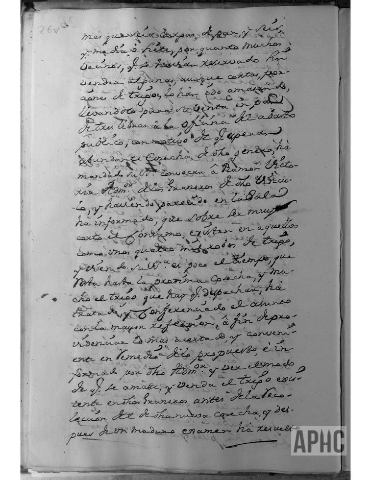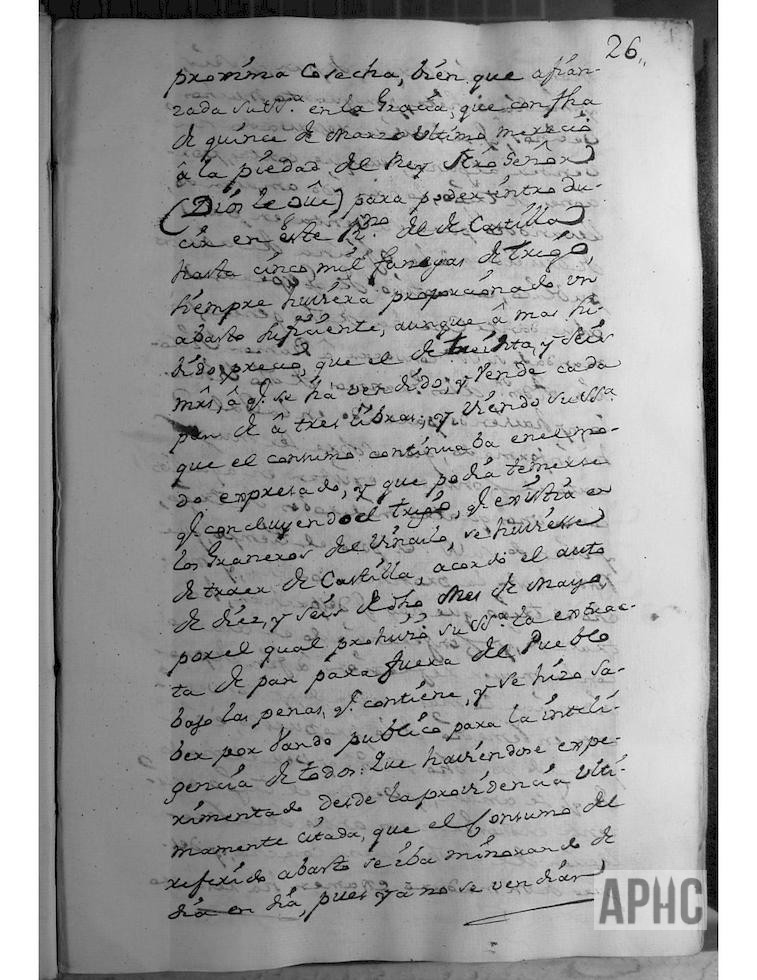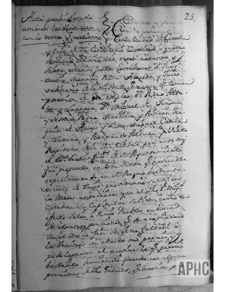 Estando juntos los señores D. Joaquín María Morales Rada, Alcalde y Juez Ordinario de la ciudad de Corella, toman posesión de este empleo D. Pedro Altabas y Larraga, D. Miguel de Yanguas y Sesma, Pedro Marcilla y Rincón, Joaquín de Ausejo y Luna, Miguel Catalán y Lázaro y Bernardo de Alduán y Virto, Regidores de la dicha Ciudad y, entre otros asuntos, ante la escasez de trigo, se encomendó al Regidor Miguel Catalán, gestione en poblaciones cercanas compra de porciones de trigo, para los graneros del Vínculo, y se hace mención al permiso del Rey (Dios le guarde), para poder introducir en este Reino, del de Castilla, hasta 5.000 fanegas de trigo, siempre que fuese para el abasto de los vecinos. (Salió elegido para Alcalde D. Sebastián Baños Manrique, que fue destituido, y en su lugar fue nombrado D. Joaquín María Morales Rada).