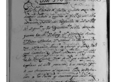 Por la Corporación saliente, se realizó el rolde de los pleitos y negocios pendientes, que deja a la Corporación entrante, para su conocimiento y seguimiento, realizándose una separación con los apartados o encabezamientos siguientes: Tribunal de Monseñor Nuncio de su Santidad: 1. En este tribunal tiene su Señoría pendiente, en grado de apelación, un pleito sobre ciertos mandatos del Ilmo Sr. Obispo de Tarazona, cuyo estado se ignora, por hacer muchos años se quedó sin enanzar. Arzobispado de Zaragoza: 2. Ítem en este Tribunal, tiene su Señoría pendiente el pleito que expone el número segundo del rolde, que con mandato del Real Consejo, se hizo en 28 de Septiembre del presente año, por testimonio del Escribano infrascrito, en cuyo oficio y registro obra protocolado. Obispado de Tarazona: 3. En este Tribunal, tiene su Señoría pendientes los 3 pleitos que se expresan en el mencionado rolde, bajo los números 3º, 4º y 5º, en los que se hace saber el estado de ellos. Real Cámara de Castilla:4. Ítem tiene pendiente su Señoría en la Real Cámara de Castilla, los 3 recursos que, con individualidad, se manifiestan en los números 6º, 7º y 8º, del relacionado rolde de pleitos, del citado día 28 de Septiembre último, de este año. Consejo Real de Castilla: 5. Ítem en este Tribunal tiene su Señoría pendientes los 4 pleitos que se expresan bajo los números 10, 11 y 12, del referido rolde pleitos, ya citado. Tribunal de ante el Corregidor de Alfaro: 6. Ítem. hay pendiente en este Tribunal otro pleito muy viejo, y es el mismo que refiere el número 3º del expresado rolde. Supremo Consejo de Navarra: 7. Ítem en el Real Consejo de este Reino de Navarra, penden los 16 pleitos que se contienen desde el número 14 hasta el 29 inclusive, del rolde de pleitos ya citado, en el que se manifiesta el estado y circunstancia de cada uno. 8. Ítem. en dicho Real Consejo, hay otro pleito pendiente, introducido por el Cabildo de las Parroquias de esta Ciudad, sobre resistir el que su Señoría haya suspendido del empleo de campanero y fuellista de Ntra. Sra. del Rosario, a Nicolás de Funes, por no obedecer las órdenes de la Ciudad, en cuyo pleito solicita el Cabildo se le mantenga en su oficio, por no haber faltado a su obligación, sino que ha obedecido en cumplir las órdenes del Cabildo, a quien le compete darlas sobre el modo de tañer las campanas. 9. Ítem habiendo resuelto la Ciudad, en su auto del día 15 del corriente mes, que pasó por testimonio del Escribano infrascrito el que, en cuantas ocasiones se le ofreciere pedir a dicho Cabildo Eclesiástico, las rogativas por necesidad de agua y otras causas, se ejecute por medio de un oficio por escrito, para evitar de este modo, diferencias entre ambas comunidades. 10. Ítem habiendo sido condenado Ignacio Virto, ya difunto, a la paga de 7.859 reales y 26 maravedíes, pertenecientes al ramo de la Carnicería, cuya administración corrió a su cargo en años anteriores, se obtuvo la correspondiente escritura y habiendo procedido con ella, se opuso a mala voz Dª Felipa Sanjuán, su viuda, pretendiendo se le declarase acreedora anterior, en su dote que llevó al matrimonio, y la Ciudad se allanó a que se hiciese pago de aquel, con los bienes equivalentes de su marido, dejando los sobrantes a beneficio de la Ciudad, para el recobro de su crédito, cuyo allanamiento se admitió por sentencias del Real Consejo; y habiendo elegido dicha Dª Felipa, por la tasación que hace unos años se tenía hecha, no resultaron sobrantes algunos, y le precisó a la Ciudad, acudir al Real Consejo, haciendo presente le convenía mandase se volvieran a justipreciar los bienes elegidos y también los muebles, plata, ropas y demás efectos que había en la casa de su marido, pues de este modo, se verificarían sobrantes para cubrir el crédito de la Ciudad. Real Corte de este Reino de Navarra: Ítem hay en este Tribunal pendientes los 26 pleitos que se expresan, desde el número 30 hasta el 55, del citado rolde de 28 del último mes de septiembre, en el que se manifiestan el estado y circunstancias de cada uno, para la inteligencia de la Ciudad. Juzgado de ante el Alcalde de esta Ciudad: Finalmente, tiene su Señoría pendientes en el Tribunal de ante su Alcalde Ordinario, 2 pleitos contra la ciudad de Alfaro y sus Regidores, sobre contravención de aguas, pero se ignora su estado y circunstancias, y ni se sabe su paradero. (El mencionado auto de 28 de Septiembre no figura redactado).