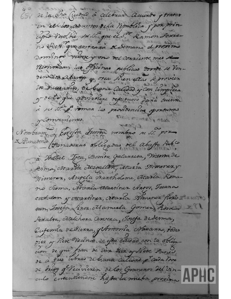Entre otros asuntos, se nombró panaderas obligadas para el abasto público, a Isabel Igea, Benita Galarreta, Vicenta de Sesma, María Magallón, María Jiménez y Jiménez, Ángela Bartholomé, María Romano Sesma, María Martínez Argós, Juana Catalán y Martínez, María Jiménez Floristán, Josefa Liroz, Manuela Gómez, Rosa Peralta, Melchora Cervera, Josefa de Sesma, Eufemia de Sierra y Antonia Navarro, las 17 vecinas de esta Ciudad, con la obligación de que han de dar 17 panes de a 3 libras, de buena calidad, por cada robo de trigo que recibieren de los graneros del Vínculo, hasta la nueva próxima cosecha, siendo de su cuenta la maquila y demás gastos.