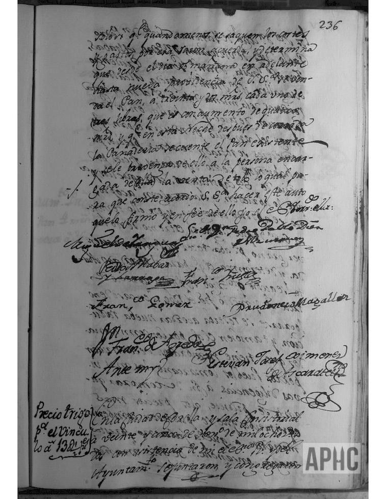 Se realiza compra de trigo pada el Vínculo, teniendo que pagar a a 13 ½ reales el robo y en consecuencia, en la siguiente sesión de 3 de febrero se aumenta el precio del pan en 4 maravedíes, vendiéndose el pan de 3 libras a 36 maravedíes, y posteriormente, en el mes de marzo se incrementará hasta 41 maravedíes, por los elevados precios del trigo.