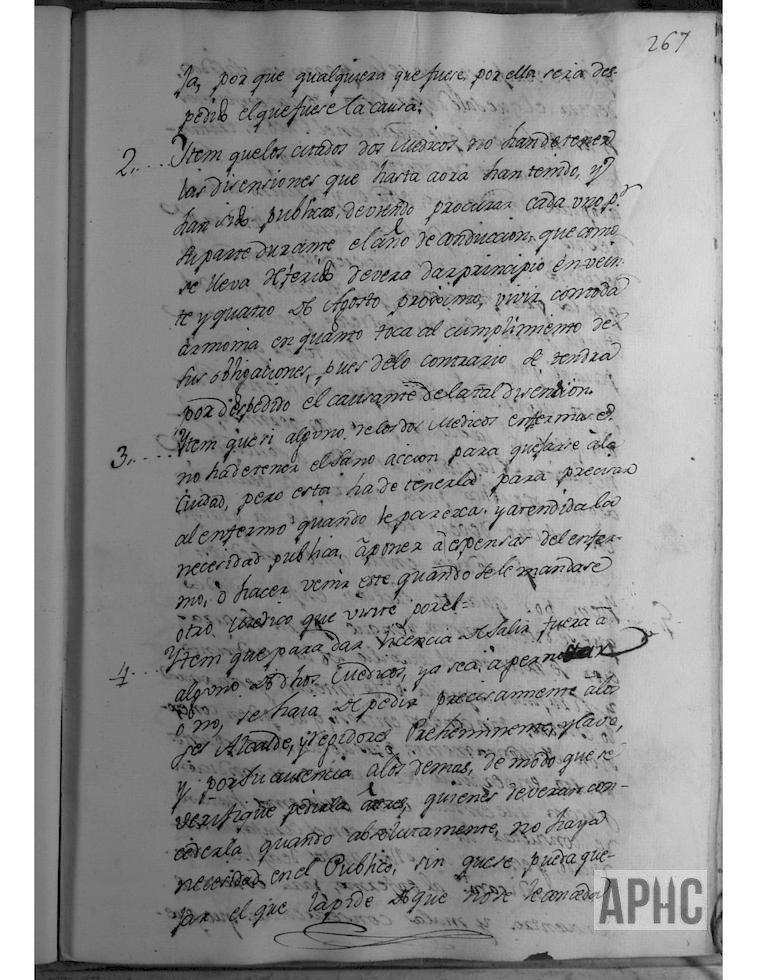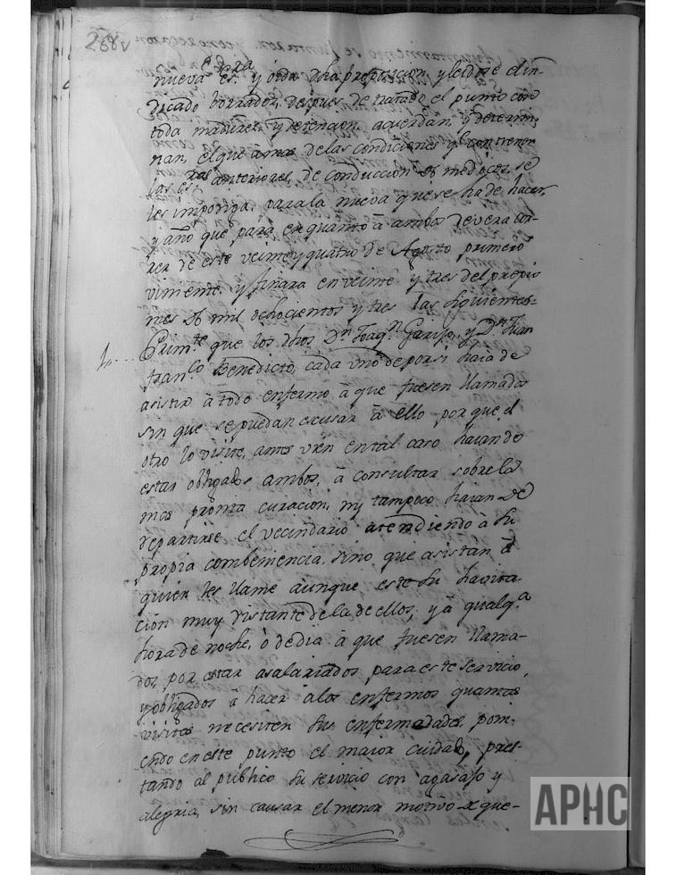 Con asistencia de los miembros de Veintena, se informa de la renovación en el cargo a los médicos Joaquín Garijo y Juan Francisco Benedito y se acuerda se pongan las condiciones siguientes: 1. Primeramente que los dichos Joaquín Garijo y Juan Francisco Benedito, cada uno de por sí, halla de atender a todo enfermo a que fuesen llamados, sin que se puedan excusar de ello porque el otro lo visite, antes bien en tal caso, estarán obligados ambos a consultar sobre la más pronta curación, ni tampoco se repartan el vecindario, atendiendo a su propia conveniencia, sino que asistan a quien les llame, aunque esté su vivienda muy distante de la de ellos, y a cualquier hora de la noche y de día a que fuesen llamados, por estar asalariados para este servicio y obligados a hacer a los enfermos cuantas visitas necesiten sus enfermedades, poniendo en este punto el mayor cuidado, prestando al público su servicio “con agasajo y alegría, sin causar el menor motivo de queja” que, por cualquiera que fuere por ella, sería despedido el que fuese la causa. 2. Que los citados médicos, no han de tener las disensiones que hasta ahora han tenido y han sido públicas, debiendo procurar cada uno por su parte, durante el año de conducción, llevando con armonía el cumplimiento de sus obligaciones, pues de lo contrario, se tendrá por despedido el causante de tal disensión. 3. Que si alguno de los dos médicos enfermase, no ha de tener el sano motivo para quejarse a la Ciudad, pero ésta ha de tenerlo para precisar el enfermo cuando le parezca, y atendida la necesidad pública, a poner a expensas del médico enfermo otro médico. 4. Que para dar licencia para salir fuera de la Población, alguno de dichos médicos, se pedirá a los Sres. Alcalde y Regidores Preeminentes y Cabo, y en su ausencia a los demás Regidores, quienes podrán concederla cuando no haya necesidad en los vecinos, sin que se pueda quejar, el que la pide, si no se le concede; el que sale deberá dejar una lista de sus enfermos, si los hubiere, al médico que queda en el Pueblo, tratando ambos antes el método curativo y circunstancias de sus dolencias, y de lo contrario, se dará por despedido; bien entendido que las gratificaciones que reciban fuera del Pueblo, por sus salidas, serán para el que las ganase, sin tener que dar parte alguna al otro médico, pero si la salida fuese concedida por la Ciudad, a solicitud de alguna Población, para visitar a su vecindario, en tal caso deberá ser partible dicha gratificación que se diese entre ambos médicos. 5. Que cuando sucedan enfermedades que se dicen mixtas, en que para su curación se necesita el auxilio de la medicina y cirugía, aquella para lo interno y ésta para lo externo, que necesitan conexión de medicamentos, pues aplicándose opuestos resulta en perjuicio del paciente, es preciso que ambos médicos contacten con el cirujano, antes de aplicar ningún medicamento. 6. Que en atención a que la Veintena, por un efecto de compasión hacia las familias de dichos médicos, ha accedido a la prórroga de sus conducciones por un año, se espera el mayor celo en su atención al público, dando pruebas de la enmienda de sus defectos. 7. Que, con arreglo a lo últimamente mandado por el Consejo, en las sentencias de confirmación de cuentas de Propios y Rentas, ha de ser condición precisa que, si ocurriese visitar a algún enfermo en las cárceles de esta Ciudad, ya sean presos naturales o forasteros, sea mucho o poco el tiempo de la enfermedad, no solicitarán se les compense, ya que están obligados a hacerlo como a cualquier vecino. Estas condiciones, además de las comprendidas en anteriores escrituras (contratos), se deberán cumplir inviolablemente por dichos médicos, y el que no las cumpliere en todas o en parte, será inmediatamente despedido, haciéndoles saber esta auto y el de 17 de mayo, a los dichos médicos, para que no aleguen ignorancia. Seguidamente figuran, por separado, las correspondientes notificaciones, realizadas por el escribano del Ayuntamiento, con fecha 14 de Junio al Licenciado Joaquín Garijo, Médico, firmando la correspondiente notificación e igualmente otra notificación firmada, como acuse de recibo por Juan Francisco Benedito (firma Benedito y en alguna ocasión se indica Benedicto).