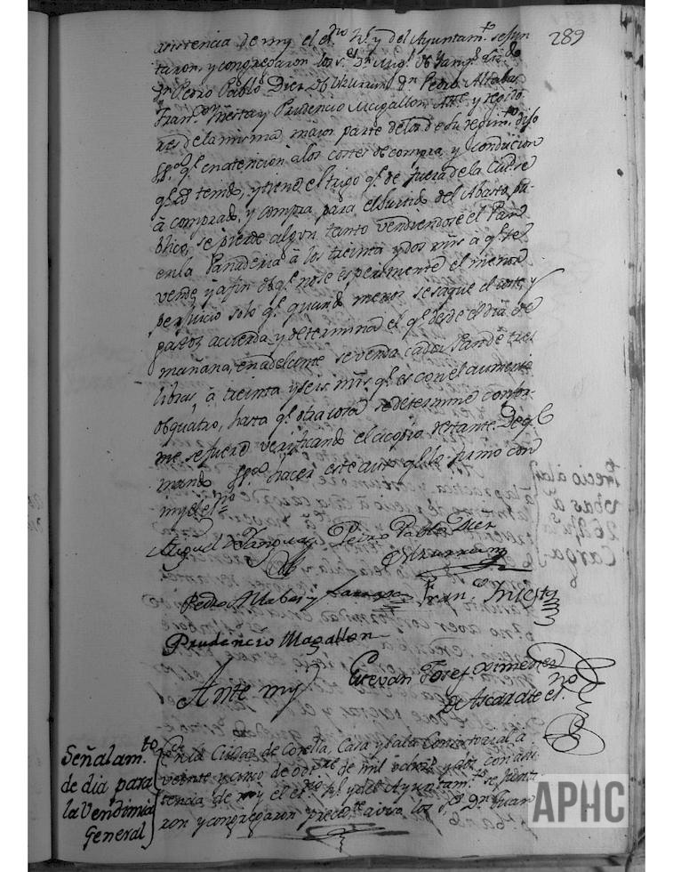 Una vez reconocido el fruto de uva de la presente cosecha, se acordó señalar el próximo martes 2 de Noviembre, para el comienzo de la vendimia general, no pudiendo traer cantidad alguna hasta después de las 12 horas de dicho día. También se acordó señalar y fijar el precio de cada carga de uvas de la presente cosecha, fijándose, después de debatido el tema, en 13 pesetas cada carga de uvas de 10 arrobas, habiéndose ausentado de la sesión el Regidor Miguel Magallón por tener que vender una pequeña porción de uva.