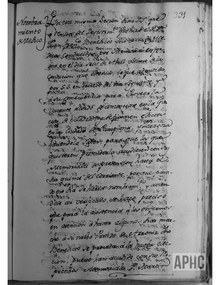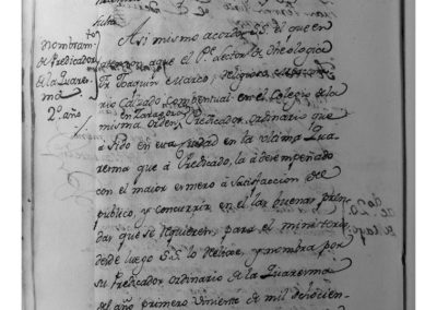Se nombró por Predicador de la Cuaresma a Fray Joaquín Marco, religioso mercedario calzado conventual, en el colegio de Zaragoza. Por renuncia del médico Juan Francisco Benedito, se anuncia la vacante y presentan memorial Martín de Igúzquiza, Cirilo Montorio, Josef de Castro, Diego del Río, Genaro Banegas y Antonio Sánchez y después de varias deliberaciones se acordó el nombramiento de Martín de Igúzquiza, por mayor número de votos y por un período de 3 años. Se propone que para la construcción del coro bajo en la iglesia de Ntra. Sra. del Rosario, se aproveche la sillería vieja y demás materiales, en la construcción del nuevo.