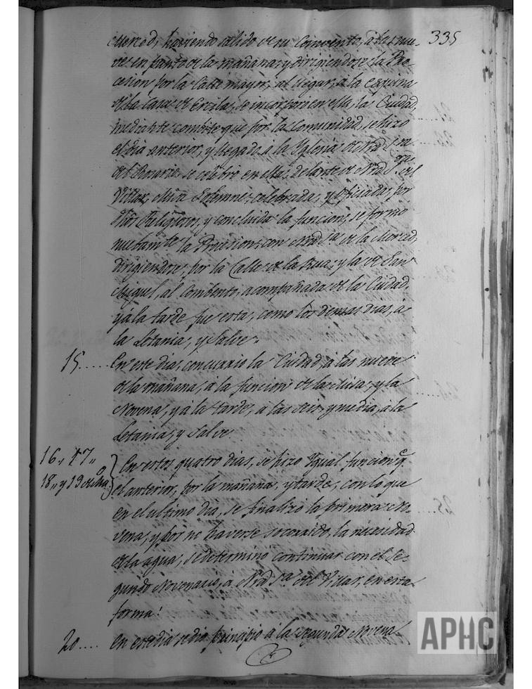 Se detalla la traída de Ntra. Sra. del Villar, para realizar un novenario de rogativa, por la gran necesidad de agua, para los campos. Se pormenorizan las ceremonias religiosas ocurridas a partir de su traída el día 10 de Mayo, a la parroquia de Ntra. Sra. del Rosario y realizadas en el transcurso de los días siguientes hasta el día 29 en que, transcurrido el segundo novenario, se trasladó la imagen de la Virgen a su Basílica.