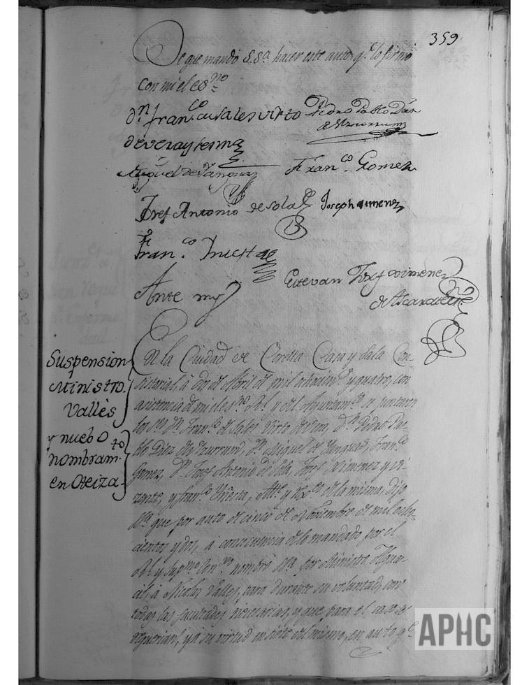 Por las consideraciones que en el auto se exponen, se acordó suspender de su cargo de Ministro Alguacil a Nicolás Vallés, y nombrar para dicho empleo a Francisco Oteiza, vecino de esta Ciudad.