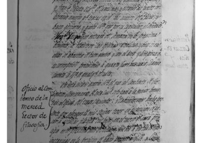 Entre otros asuntos, teniendo noticias de que hijos de vecinos de la Ciudad, deseaban estudiar filosofía el próximo curso, que comienza el próximo mes de Octubre, se acuerda remitir oficio al Convento de Religiosos Mercedarios, instándoles a disponer de Lector de Filosofía, para el próximo y los dos años siguientes, a que están obligados, según el último convenio firmado y aprobado por el Obispo de este Obispado. (La contestación fue rápida y en sentido positivo). Se acuerda publicar bando, prohibiendo cazar en las viñas de esta jurisdicción, ni se introduzca nadie con el pretexto de coger moras.