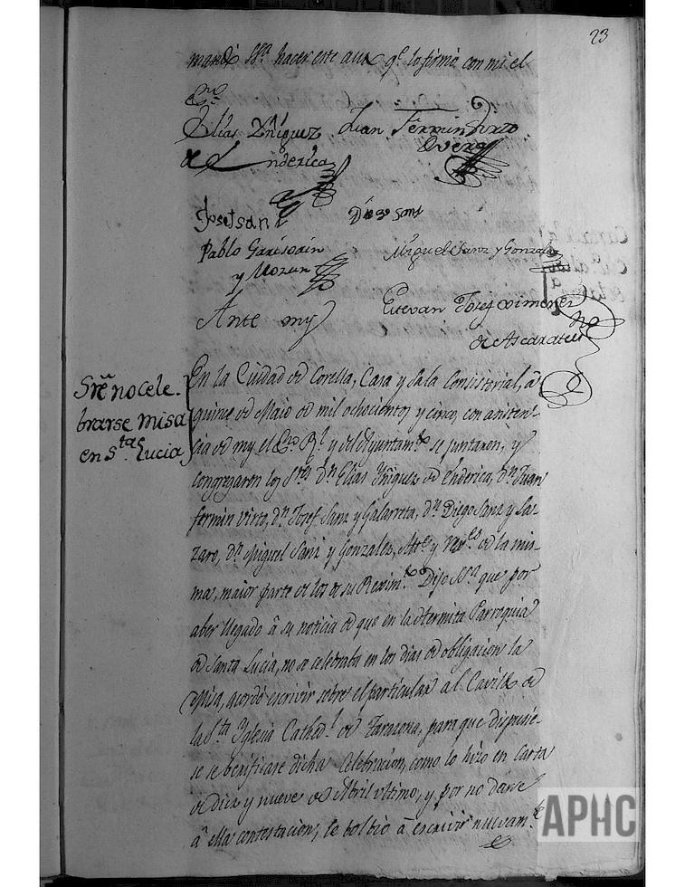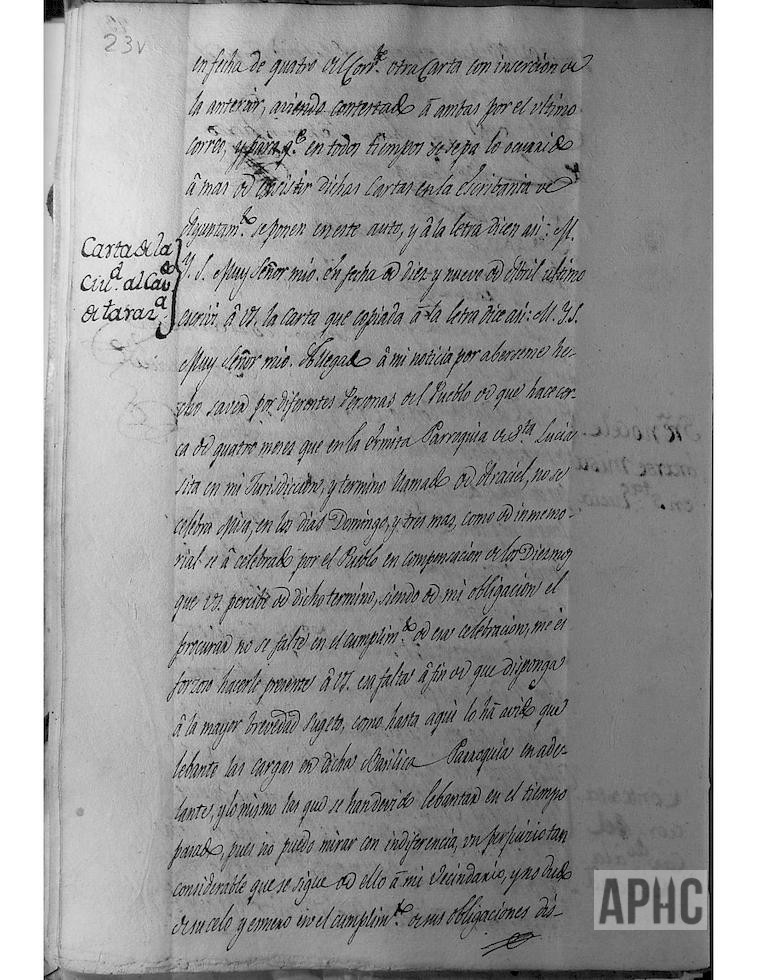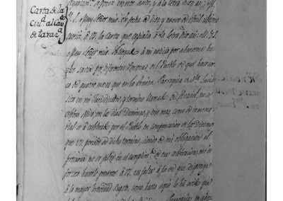 Ante noticias de los vecinos, de no celebración de misa, como anteriormente se realizaba, en la Ermita parroquia de Santa Lucía, término de Araciel, su Señoría escribe carta al Cabildo de la Catedral de Tarazona, solicitando que se vuelva a la situación anterior en que los domingos y 3 días más, se celebraba misa en dicha Ermita, en compensación con los diezmos que Tarazona percibe de dicho término. Se recibe contestación de Tarazona, indicando, se reanudarán las misas, pero será necesario abonar alguna cantidad.