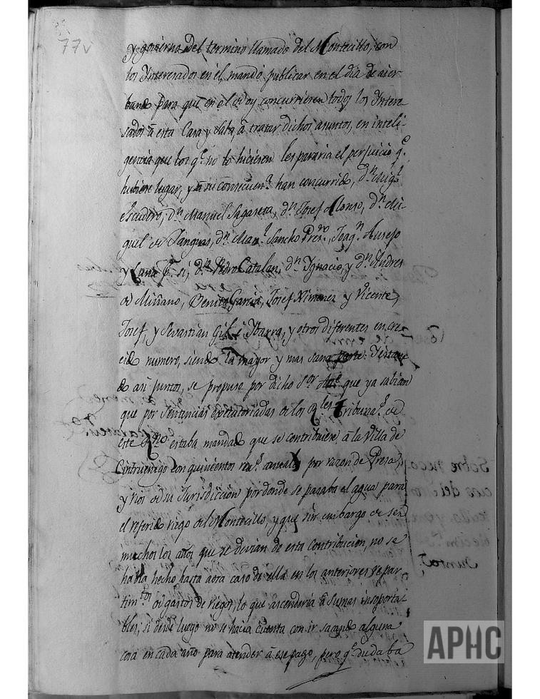 Reunidos Alcalde y Regidores, concurrieron propietarios del término del Montecillo, que había sido convocados por el oportuno bando, asistiendo Miguel Escudero, Manuel Sagaseta, Josef Alonso, Miguel de Yanguas, Manuel Sancho presbítero, Joaquín Ausejo y Luna, Pedro Catalán, Ignacio y Andrés de Miñano, Benito García, Josef Jiménez y Vicente, Josef y Sebastián Gil e Ibarra y otros en importante número, se trata sobre los pagos que habría que realizar por el riego de los tierras de dicho término y posibilidad de formación de una Junta.