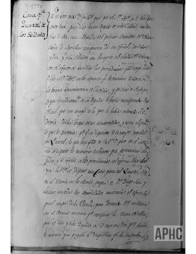 Ante la llegada a la Ciudad de una partida del Primer Batallón de Voluntarios de Barcelona, compuesta de 1 oficial, 2 cabos y 18 soldados, se habilitó para cuartel una casa propiedad de Diego Sanz Lázaro, en el barrio de la Merced.