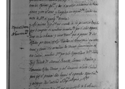Entre otros asuntos, se nombró por repartidores de los 85 ducados que pagan las tiendas de exmercería, a Martín Josef Indave, Manuel Artázcoz, Lorenzo Baudor y Saturnino Ribas, vecinos y del Comercio de esta Ciudad, para que procedan al reparto y realizar su cobranza. Por mandato del Real y Supremo Consejo, es necesario proponer 3 personas para el empleo de Depositario Interventor de Propios y Rentas, y dado que el actual D. Tomás Virto de Vera, finaliza en fin de Diciembre, se propone para dar comienzo en 1 de Enero próximo a D. Pedro Pablo Díez de Ulzurrun, D. Miguel de Yanguas y D. Joaquín Mª Morales Rada, personas de total confianza, para que, de entre ellas, elija dicho Consejo.