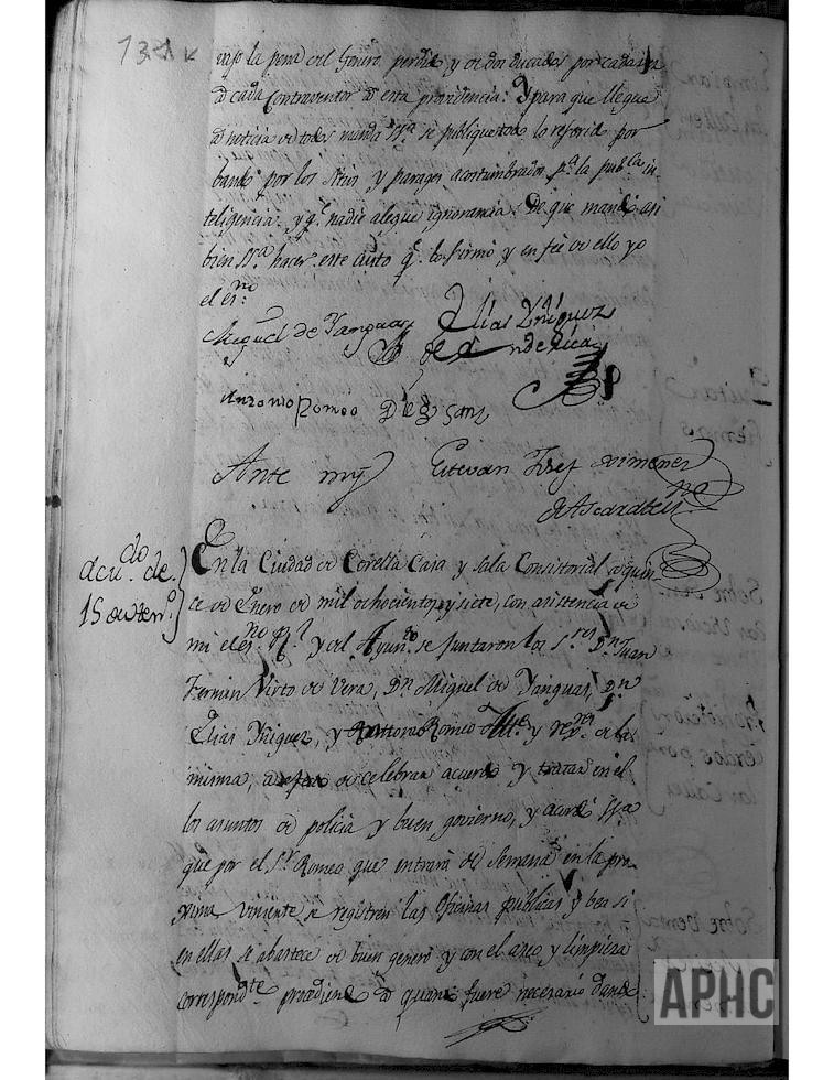 Se nombra para el empleo de Justicia a Ramón Alfaro, por haber presentado su renuncia el anterior Vicente Inesta. De conformidad con el Justicia Principal Matías Arellano Sanz, y Ramón Alfaro, se acuerda que todas las cobranzas de los repartos que procedan, se realizarán por Ramón Alfaro. Se trató sobre la no toma de posesión de los Regidores Miguel Ausejo por ausente y de la toma posesión de su cargo del Regidor D. Joaquín Morales y Galdiano, que no pudo en su momento, por estar entonces enfermo en cama. Se acuerda recurrir al Real Consejo, sobre el arriendo de la pesca en el río Alhama, ya que el anterior adjudicatario Antonio Vallés, no había cumplido con su compromiso de abono de 24 ducados por el periodo de 3 años.